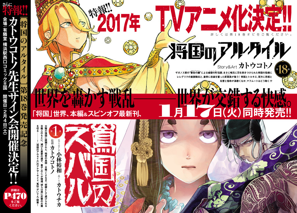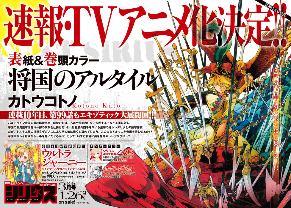 มังงะแฟนตาซีแนวประวัติศาสตร์ Shokoku no Altair เตรียมถูกสร้างเป็นอนิเมะ
