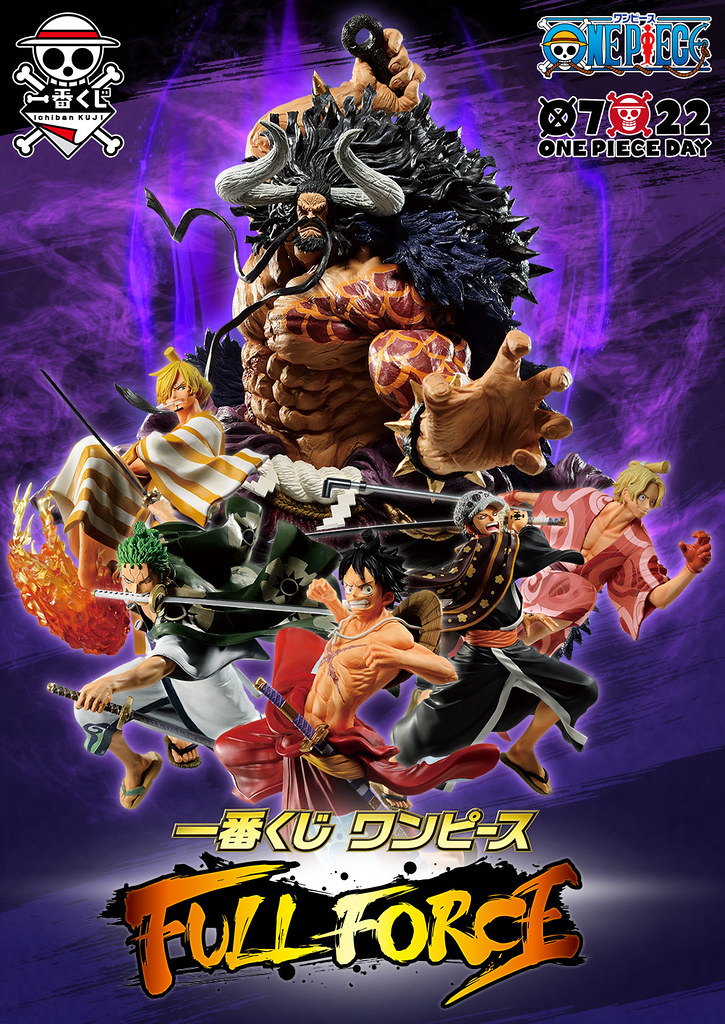 งานฟิกเกอร์แนวจับรางวัล Ichiban Kuji นำตัวละครฮิตจาก One Piece มายำเป็นของรางวัลอีกแล้ว โดยรอบนี้ ใช้ชื่อเซ็ตว่า "Full Force" โดยจะเริ่มปล่อยให้ร้านค้าในญี่ปุ่นเริ่มจำหน่ายในวันที่ 13 สิงหาคมนี้