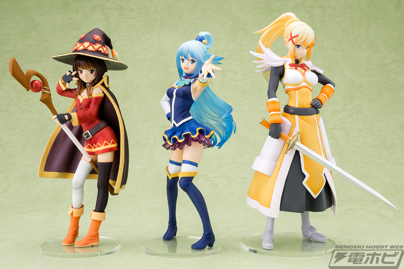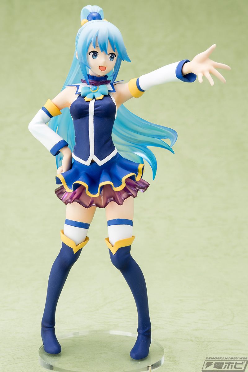 จากอนิเมะสุดฮา Kono Subarashii Sekai ni Shukufuku wo! เรื่องราวของซาโต้ คาสุมะที่เผอิญต้องตายอย่างอนาถ แล้วได้พรไปเกิดอีกโลกนึง พร้อมนางฟ้าบ๊อง ๆ อีกคนหนึ่ง พร็อตเรื่องไร้สาระ แต่ดูแล้วอารมณ์ดี ยิ้มได้เกือบทุกตอน ด้วยเหตุที่ว่าตอนนี้อนิเมะได้ไปต่อในซีซั่น 2 ก็เลยมีฟิกเกอร์ออกมาวางจำหน่าย เพียงแต่ฟิกเกอร์ชุดนี้จะเป็นฟิกเกอร์ชุดเล็ก ขนาดสูงประมาณ 13 เซนติเมตร ซึ่งดีไซน์ของฟิกเกอร์จะเหมือนดีไซน์ของการ์ตูนในซีซั่น 2 (หน้าตาจะแตกต่างจากซีซั่น 1 เล็กน้อย)