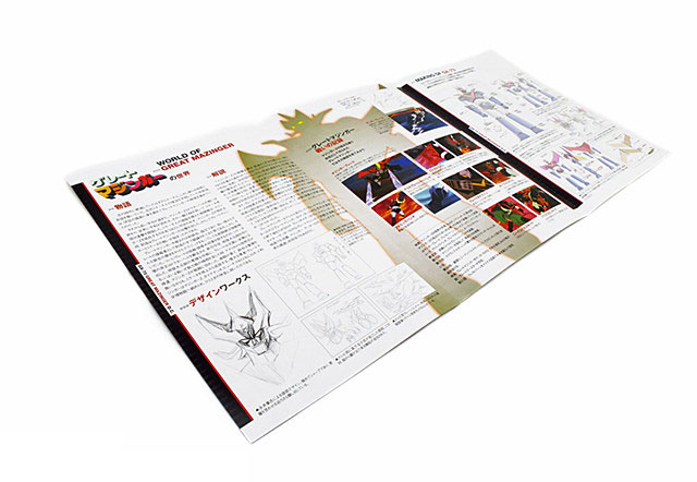 ▼ มีแผ่นพับที่เผยถึงเรื่องราวของหุ่น Mazinger ภาพดีไซน์ และแนะนำส่วน และอาวุธต่าง ๆ ของหุ่น