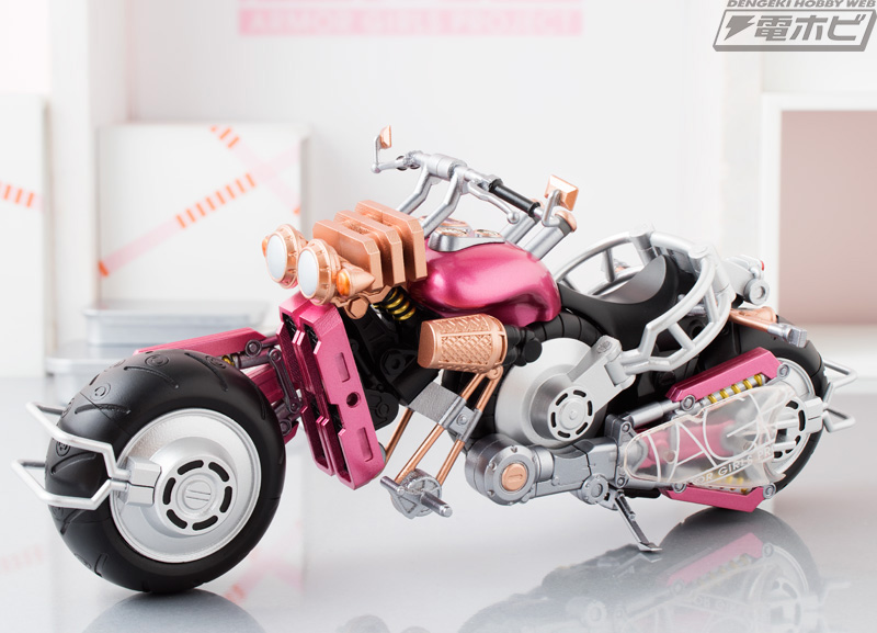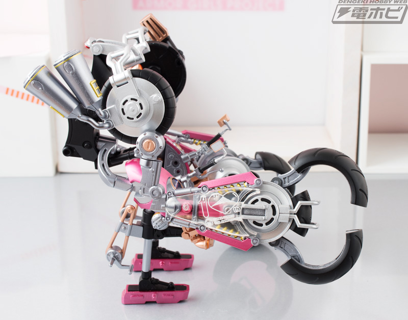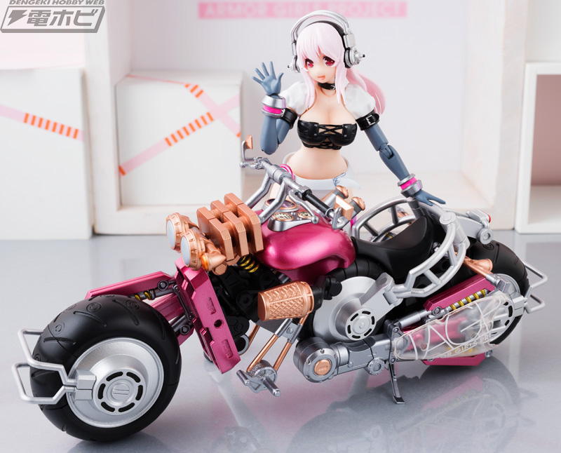 ชุดเกราะสามารถเปลี่ยนร่างเป็นมอเตอร์ไซค์ได้ เป็นอีกหนึ่งลูกเล่นที่ทำให้สินค้าเซ็ตนี้ดูน่าสนใจและเล่นได้สนุกสนานยิ่งขึ้นไปอีก ที่สำคัญ รูปแบบของมอไซค์ก็ยังดูสวย เหมาะกับ Sonico มาก ๆ เมื่อนำมายืนคู่กันแล้ว เหมือนกับเธอเป็น Race Queen เลยทีเดียว