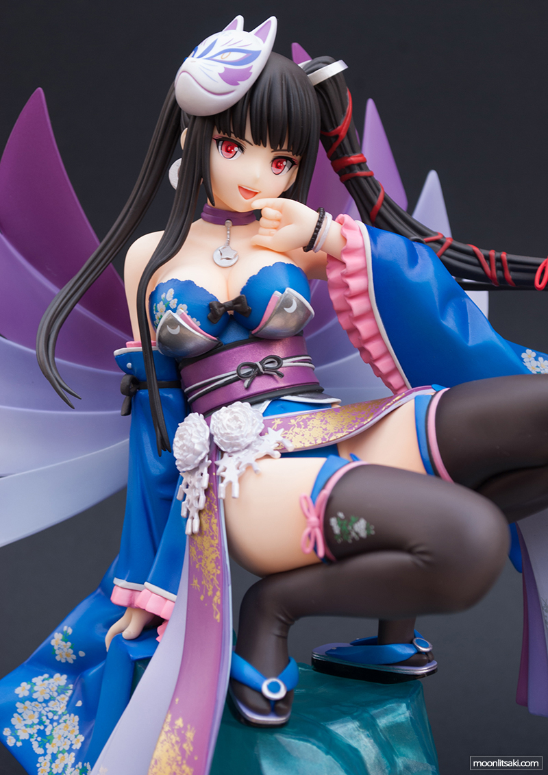 งานฟิกเกอร์ค่อนข้างละเอียดมาก ทั้งสีที่ลงบนหน้ากาก หรือแม้แต่ลวดลายบนเสื้อกิโมโน ถึงแม้ว่าเส้นเชือกสีแดงจะลงสีเหลื่อมไปบ้าง แต่มองรวม ๆ แล้วฟิกเกอร์นี้ก็ทำออกมาได้เนียน สวยงามจริง ๆ