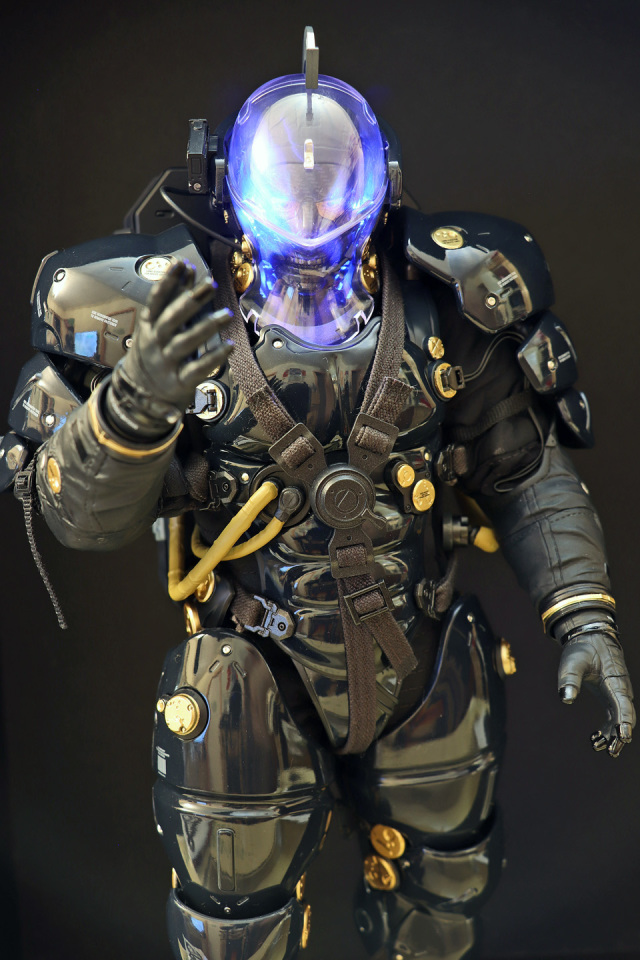งานออกแบบนี้ มาจากฝีมือของชินคาวะ ซึ่งออกแบบผสมผสานชุดนักบินอวกาศกับชุดอัศวินยุคกลางจนออกมาดูสวยงามล้ำสมัยและดูมีเสน่ห์มาก ๆ แตะตาค่ายฟิกเกอร์ต่าง ๆ นำไปผลิตออกมาวางจำหน่ายให้แฟน ๆ ของเฮียโคจิมะได้หาซื้อไปวางที่บ้านอย่างสุขสม