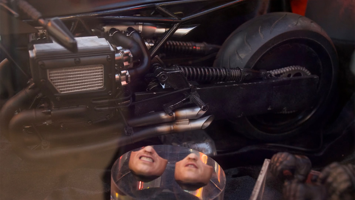 ปกติในหนัง Batman เรามักจะไม่ได้เห็นตอนถอดหน้ากากที่มีการทารอบตาสีดำแบบนี้ แต่ในภาคนี้ เปิดให้เห็นเป็นแพนดากันไปเลย ให้ความรู้สึกดารค์มากขึ้นไปอีก