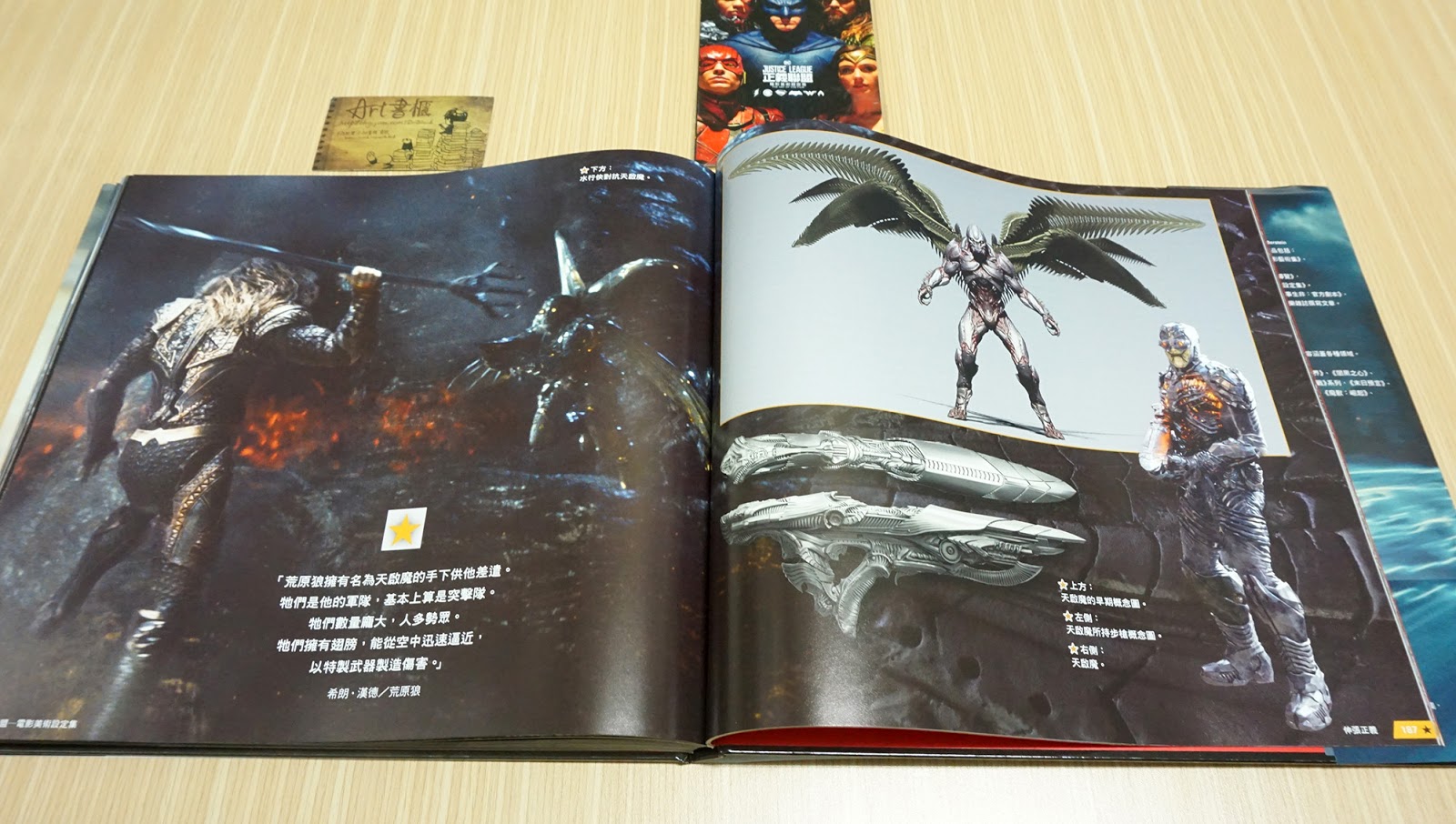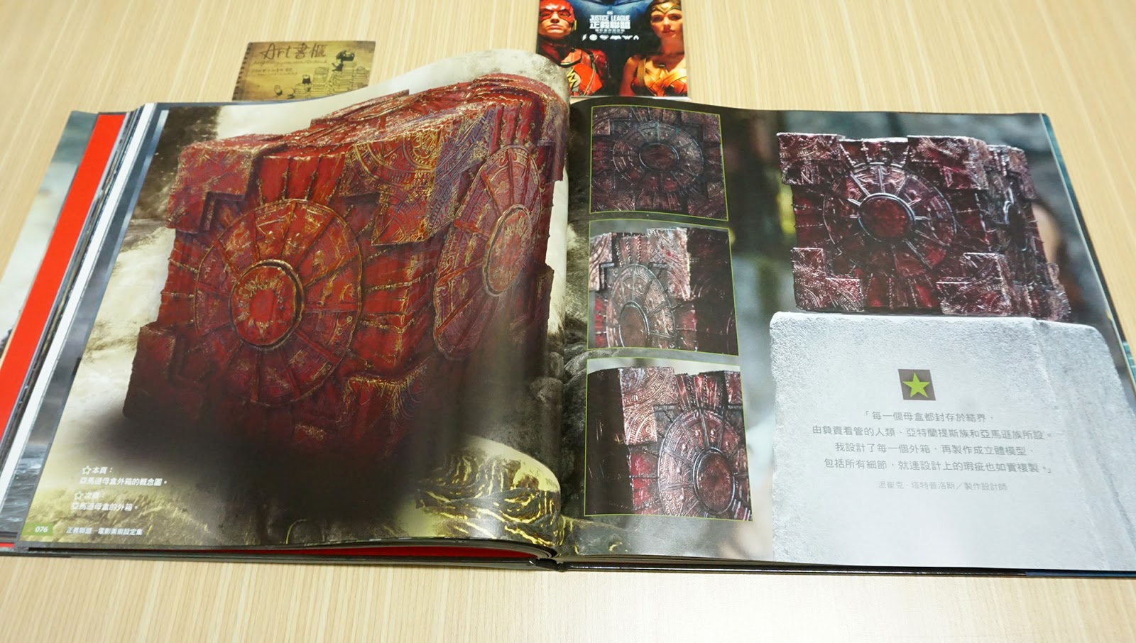 ในส่วนของหนังสืออาร์ตบุคส์เล่มนี้ เป็นกระดาษอาร์ตมันอย่างดี ปกแข็งพร้อมสี(ด้านใน) และมีปกนอกแบบอ่อนห่อไว้อีกชั้น (สวยทั้งปกใน - ปกนอกเลยทีเดียว) ตัวหนังสือมีจำนวน 208 หน้า (ขนาด 30.2 x 27.3 เซนต์) ข้างในก็จะมีเบื้องหลังการออกแบบตัวละครทั้งหลาย ทั้งตัวเอก ตัวร้าย รวมถึง ฉาก - พร็อพ และอาวุธของเหล่าฮีโร่ ที่คุณได้เห็นในหนังกันไปแล้ว ถูกรวมมาให้เห็นแบบชัด ๆ ในหนังสือเล่มนี้แบบครบถ้วนสมบูรณ์ สวยงามจริง ๆ ครับ