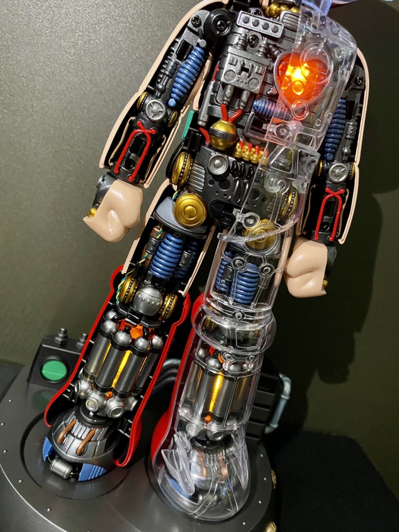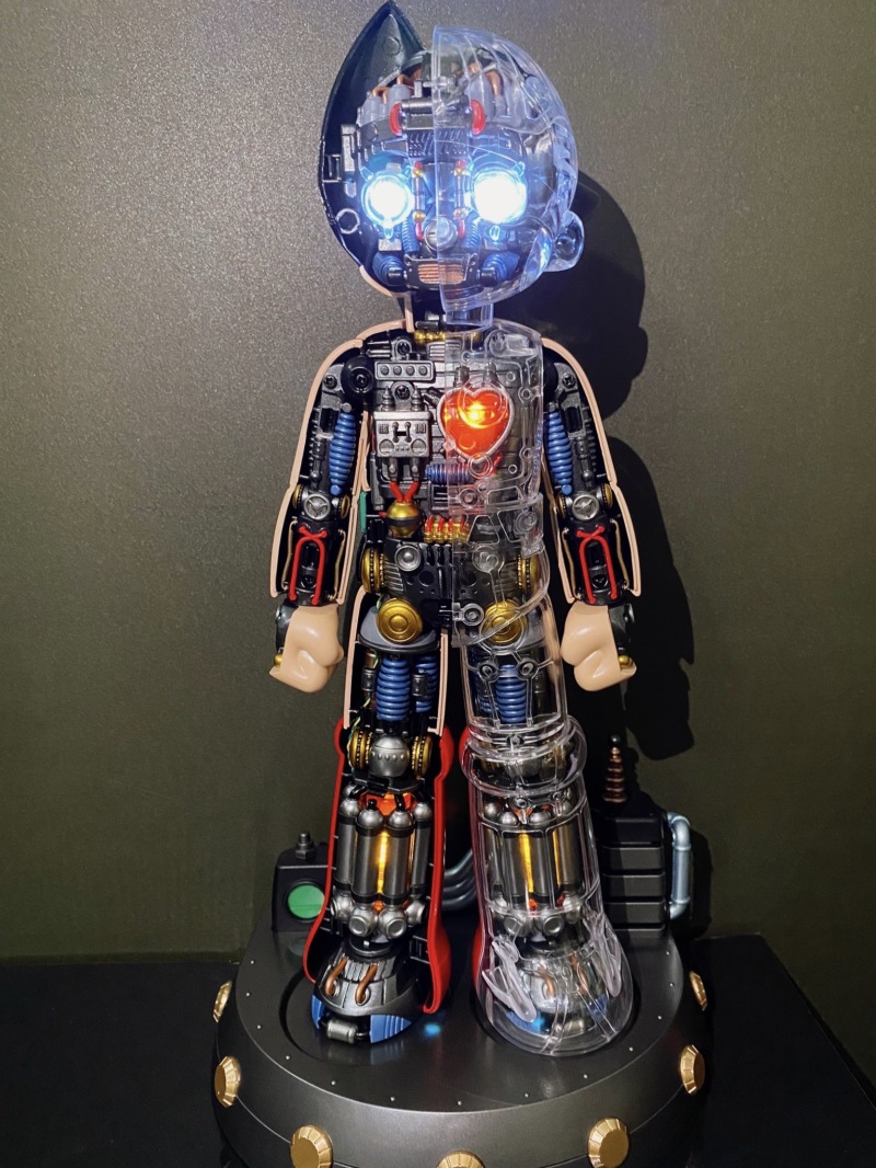 ▲เจ้าหนูอะตอมในภาพนี้ จะมีความสูงประมาณ 30 ซม. และกว้าง 11 ซม. ซึ่งใกล้เคียงกันกับความสูงของ Astro Boyในการ์ตูนต้นฉบับ! ซึ่งในส่วนของฟิกเกอร์จะมีวัสดุโปร่งใสที่ช่วยให้เห็นถึงโครงสร้างและรายละเอียดของหุ่น นอกจากนี้ยังมีปุ่มที่สามารถกดเพื่อเปิดไฟบนตัวหุ่นราวกับว่าหุ่นกำลังจะมีชีวิตขึ้นมาจริง ๆ