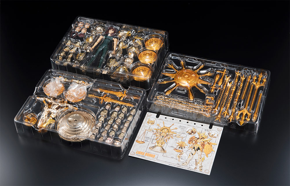 ปกติแล้ว ชิ้นส่วนของเกราะไลบรา ก็เยอะอยู่แล้ว เพราะเป็น Gold Saint ที่มีอาวุธมากที่สุด ทั้งโล่ห์ กระบอง ทวน ฯลฯ แต่พอมาเป็น God Cloth ของรุ่น EX แล้ว ชิ้นส่วนก็ยิ่งเยอะหนักเข้าไปอีก ใครที่ไม่เคยต่อมาก่อน ห้ามทำคู่มือหายเด็ดขาด ไม่งั้นต่อกันไม่ถูกแน่ ๆ