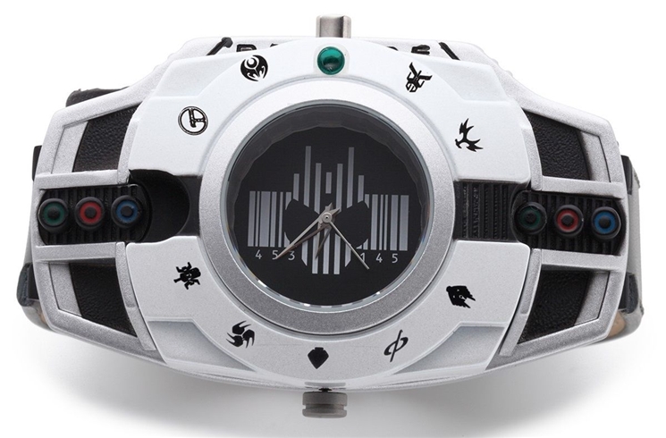 จากภาพจะเห็นว่านาฬิกาเรือนนี้ออกแบบมาจากเข็มขัดแปลงร่างของไรเดอร์ Decade ซึ่งถ้าหากเรากดปุ่มที่อยู่ด้านข้าง ก็จะมีไฟ LED สีชมพูออกมา ให้อารมณ์เหมือนกับไรเดอร์กำลังจะแปลงร่างนั่นเลยทีเดียว เห็นแล้วบอกได้เลยว่าสวย น่าสะสม โดยเฉพาะคนที่ชื่นชอบซีรีส์ไรเดอร์ มีโดนใจกันแน่ ๆ!!