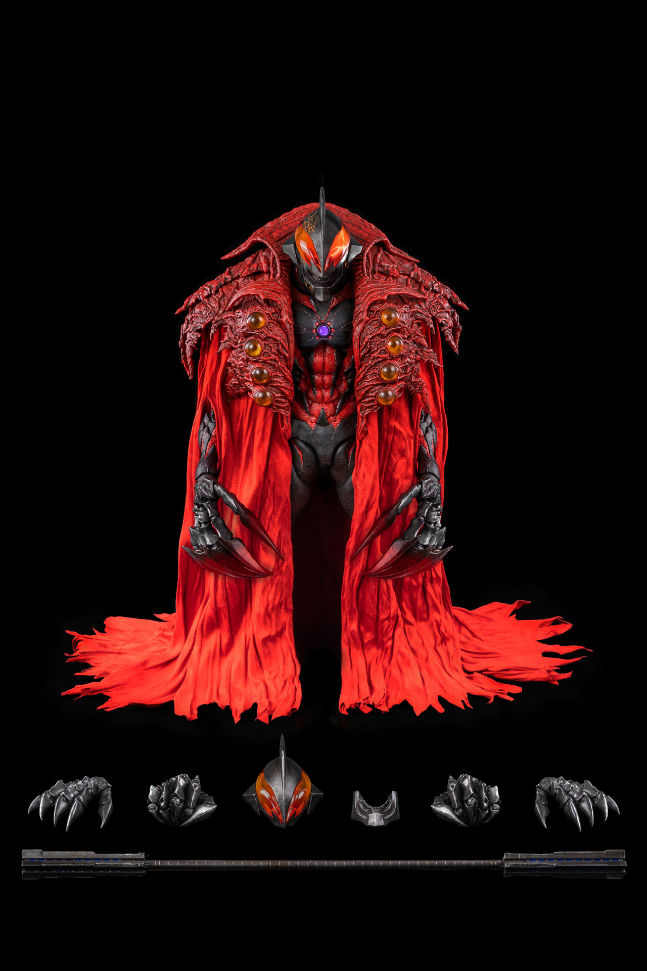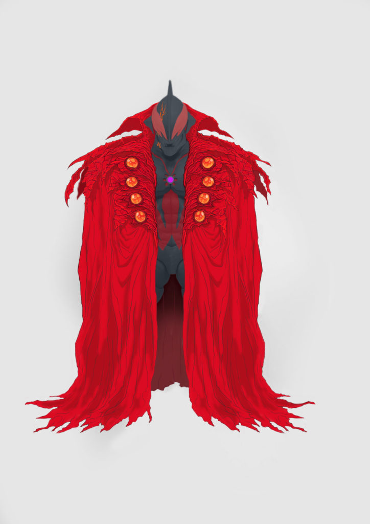 ในส่วนของผ้าคลุมนั้น ทาง Threezero ทำมันขึ้นด้วยโปรแกรมสามมิติ ซึ่งตอนที่ออกแบบก็ได้รับคำแนะนำภายใต้การดูแลของ Tsuburaya Productions จนสุดท้ายก็ออกมาเป็นต้นแบบอย่างที่เห็นต่อไปนี้