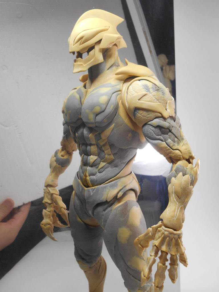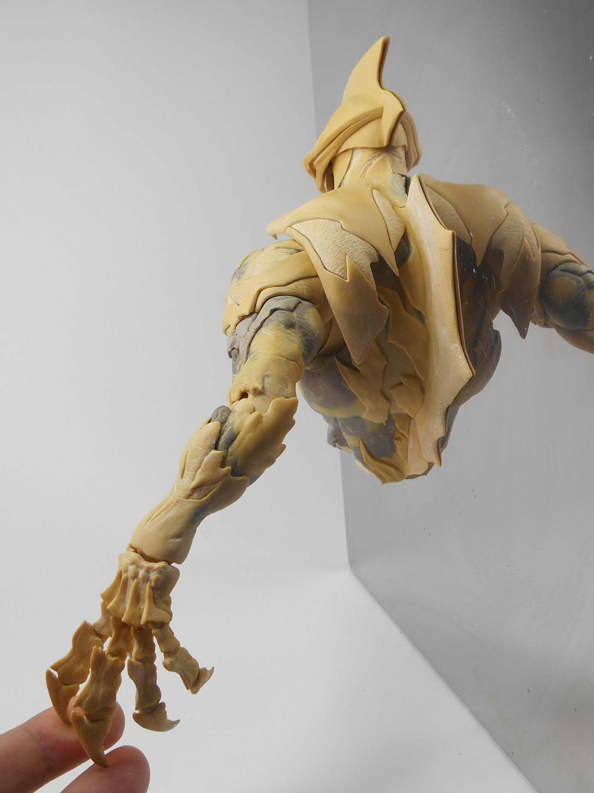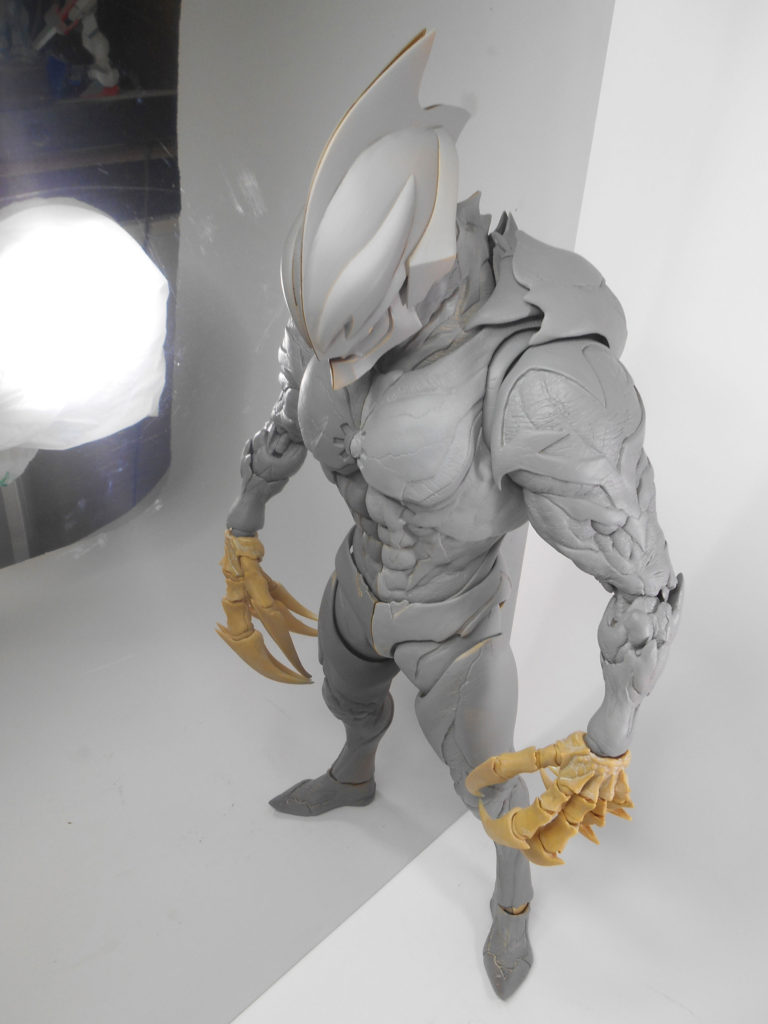 ส่วนที่เป็นรายละเอียดสำคัญที่สุดในความรู้สึกของผม ก็ยังคงเป็น "นิ้วมือ" นั่นล่ะครับ ผมคิดว่า นิ้วมือน่าจะมีจ๊อยท์และเคลื่อนไหวได้ แต่ในความเป็นจริงแล้ว เราจะสร้างจ๊อยท์ได้ก็ต่อเมื่อส่วนของข้อต่อนั้นมีขนาดที่ใหญ่มากพอ นอกจากนี้ในส่วนของปาก ผมก็อยากให้มันแตกต่างจากอุลตร้าแมนปกติ คือสามารถอ้าปากได้ ทำให้มันดูมีท่าโพสที่ดูน่ากลัวยิ่งขึ้น ซึ่งมันดูดีนะ