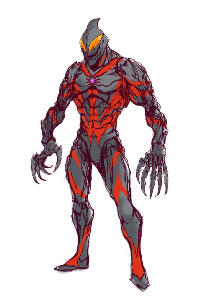 “ด้านบนนี้คือภาพสเก็ตช์ที่ผมวาดเพื่อให้ได้ภาพก่อนที่จะสร้างต้นแบบ" โดยอ้างอิงจาก Ultraman Belial ต้นฉบับและมีการปรับเปลี่ยนรายละเอียดให้แตกต่างไปจากเดิม