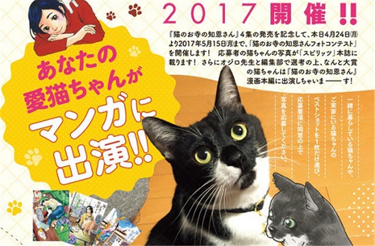 จะเริ่มเปิดรับให้ส่งภาพน้องแมวเข้าประกวดในวันที่ 24 เมษายน ไปจนถึง 15 พฤษภาคมนี้ แฟน ๆ สามารถกรอกฟอร์มเข้าประกวดได้ที่ https://manga.shogakukan.co.jp/apply/mangaform/index/neko หรือจะอัพโหลดรูปน้องแมวไปที่ Instragram หรือ Twitter พร้อมชื่อของน้องแมวตัวนั้น ที่   #猫のお寺の知恩さんフォトコンテスト