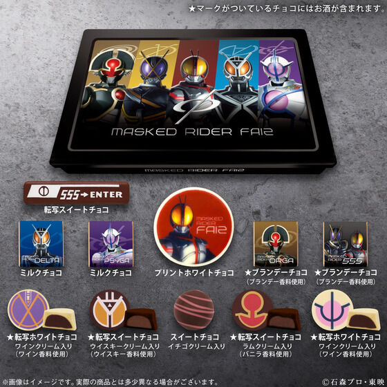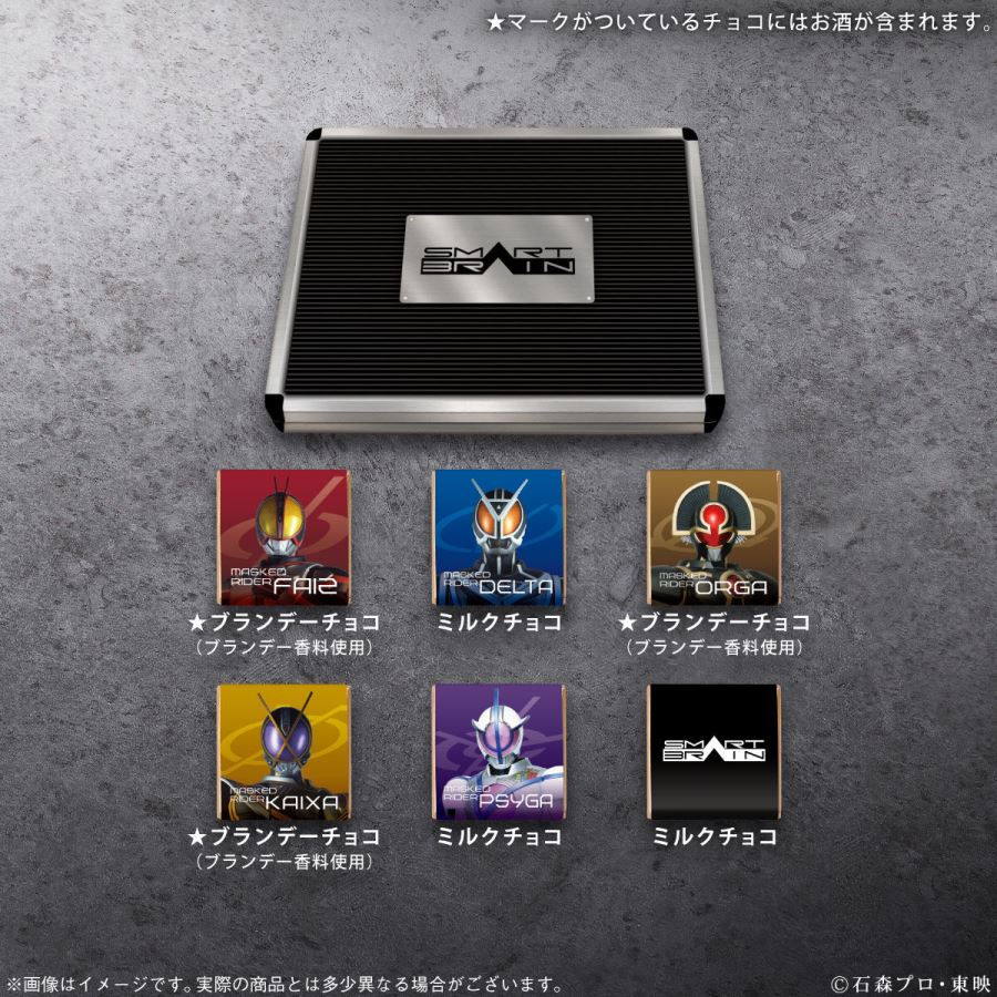 ตัวสินค้าถูกทำมาในรูปแบบ Box Set สวยงาม แบ่งเป็นชุด Faiz และ Kaixa และชุด All-Rider นอกจากดีไซน์ที่แตกต่างกันแล้ว ช็อกโกแลตด้านในยังมีให้เลือกหลากหลายสไตล์อีกด้วย สนนราคาของเซ็ต Faiz และ Kaixa ราคา 3,672 เยน ส่วนเซ็ต All-Rider ราคา 2,700 เยน