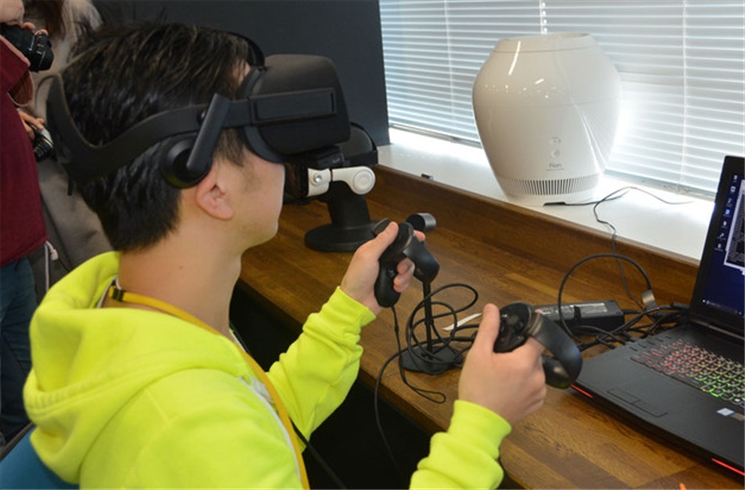 โดยเจ้าอุปกรณ์ Vaqso VR นี้จะมีขนาดเท่าแท่งบาร์ขนมสนี๊กเกอร์ นำไปติดอยู่ที่ส่วนล่างของ VR และสร้างกลิ่นออกมาตามสถานการณ์ต่าง ๆ ในเกมส์ เช่น กลิ่นดินปืนขณะเล่นเกมส์ยิง / กลิ่นอะโลม่าในสถานที่สงบ ๆ หรือแม้แต่กลิ่นแชมพูจากสาวที่ปรากฏตัวตรงหน้า ซึ่งทางผู้พัฒนายังสนใจในกลิ่นต่าง ๆ เช่น กลิ่นไก่ทอด กลิ่นแกงกะหรี่ รวมไปถึงกลิ่นที่น่ารังเกียจ เช่นกลิ่นปลาเน่าในเกมส์ Resident Evil ซึ่งกลิ่นจะแรงหรืออ่อนขึ้นอยู่กับระยะห่างระหว่างตัวผู้เล่นกับวัตถุในเกมส์
