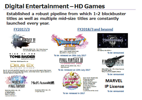 โดยแหน่งข่าวอ้างถึงภาพสไลด์ที่ปล่อยออกมาจากแถลงการณ์ทางการเงินของ Square Enix สำหรับรอบระยะเวลาบัญชีสิ้นสุด ณ วันที่ 31 มีนาคม 2560 โดยคุณมัทสึดะกล่าวถึงภาพที่แสดงออกมา ดังต่อไปนี้ : "ภาพนี้แสดงตัวอย่างการเปิดตัวในปีงบประมาณ FY2017/3 รวมทั้งในปีงบประมาณ FY2018/3 และถัด ๆ ไป เราวางแผนที่จะเปิดตัวเกมในอีก 3 ปีข้างหน้านี้