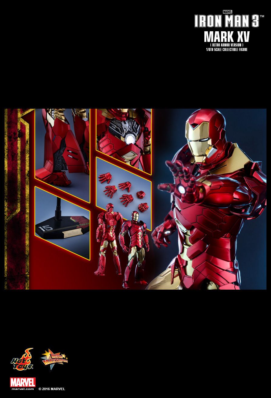 ผลิตออกมาจำหน่ายเรื่อย ๆ กับฟิกเกอร์ไอรอนแมน โดยตัวล่าสุดที่ Hot Toys ผลิตออกมา ใช้ชื่อสินค้าว่า "Sneaky Mark XV (Retro Armor Version)" เป็นหนึ่งในเกราะไอรอนแมนที่โผล่ออกมาแป๊บเดียวในภาค 3 ดีไซน์เกราะแบบไอรอนแมนยุคดั้งเดิม สีทองบนใบหน้าและลำตัว ลงสีแบบทองชุบทำให้ดูเงาวิบวับสวยจับจิตเลยทีเดียว