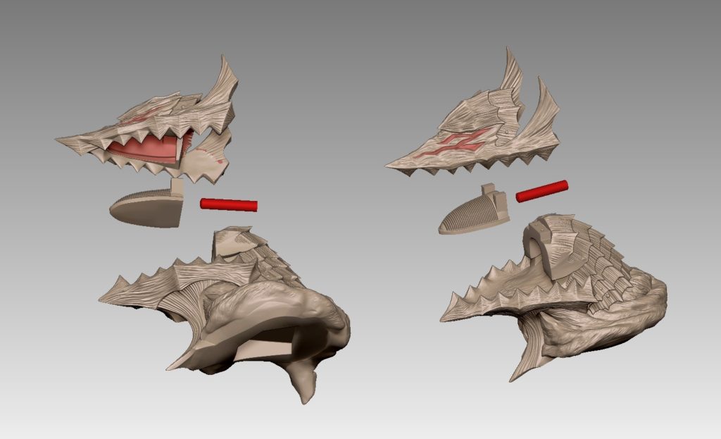 ทั้งนี้ เนื่องจากตัวฟิกเกอร์ ต้องการให้มีกิมมิกไฟ LED ออกมาจากส่วนตาด้วย ดังนั้น ในการออกแบบจึงต้องลองผิด ลองถูกกับขนาดของช่องบนหัวเพื่อให้เพียงพอกับการใส่ Milight 316R (แบตเตอรี่ลิเธียมพร้อมไฟ LED) เข้าไปได้