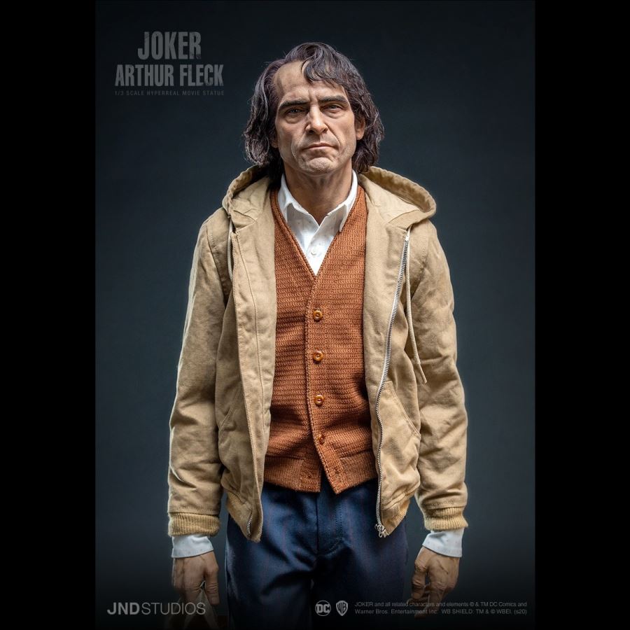 เปิดรับพรีออเดอร์ไปพักใหญ่แล้ว กับฟิกเกอร์ขนาด 1/3 จากภาพยนต์ Joker ที่เป็นเรื่องราวสุดรันทดของ Arthur Fleck ก่อนที่จะกลายมาเป็น Joker ซึ่งทางค่าย JND Studio ได้บรรจงสร้างสรรค์ฟิกเกอร์ตัวนี้ออกมาให้สมจริงสุด ๆ ชนิดที่ว่าไม่แพ้งานปั้นหุ่นขี้ผึ้งของมาดามทุสโซ่เลยทีเดียว