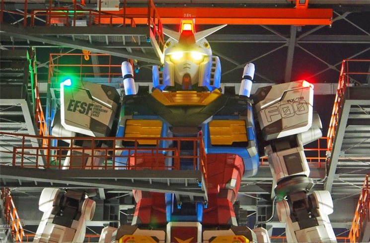 ▲กันดั้มสูงตระหง่านบนท้องฟ้ายามค่ำคืน!