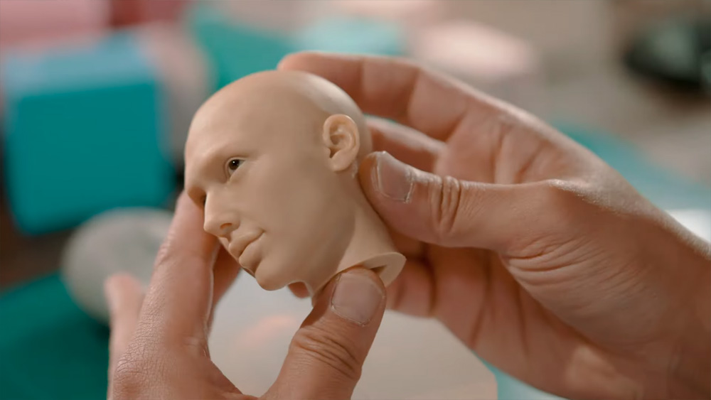 โดยตัวงาน ยังคงใช้ซีลีโคนในการปั้นเป็นส่วนของผิวหนัง ใช้ลูกบอลแก้วมาทำเป็นดวงตา รวมไปถึงการใช้เส้นผมจริงมานั่งใส่เข้าไปทีละจุดแบบเดียวกันกับที่ทำงานปั้น Joker เลย ซึ่งผลลัพธ์ที่ได้ออกมา ก็ไม่ทำให้ผิดหวังจริง ๆ ดูเหมือนจนราวกับนักแสดงมายืนอยู่ตรงหน้าทีเดียว
