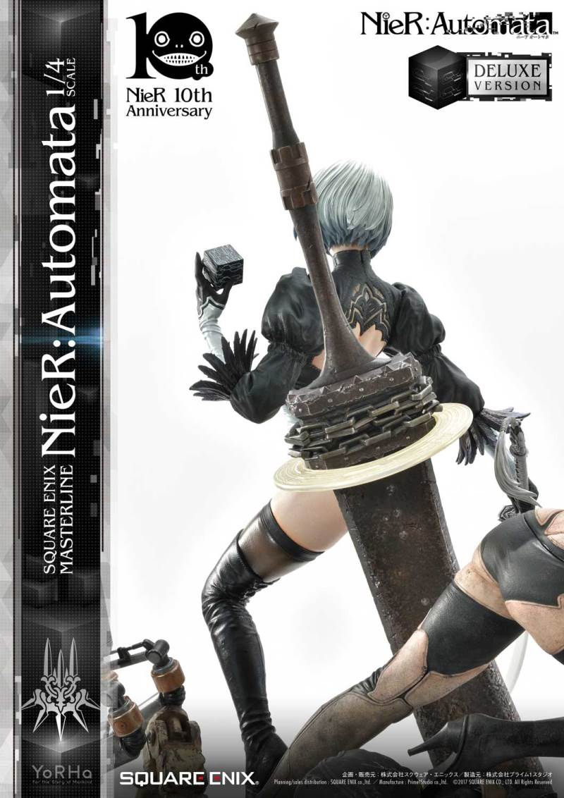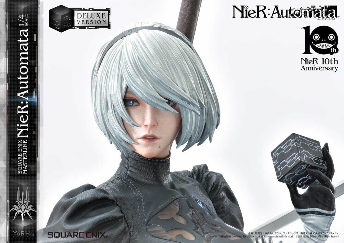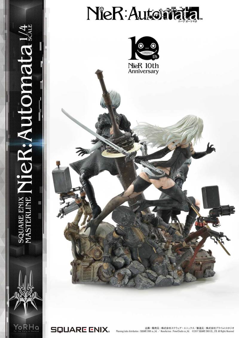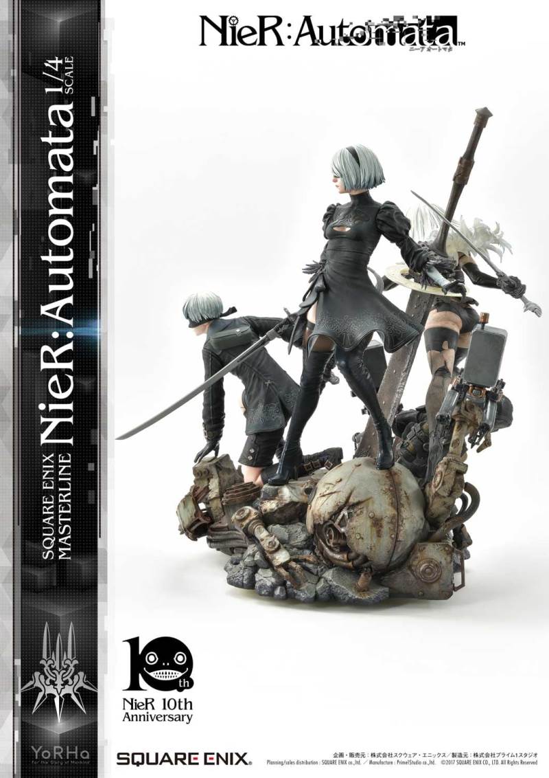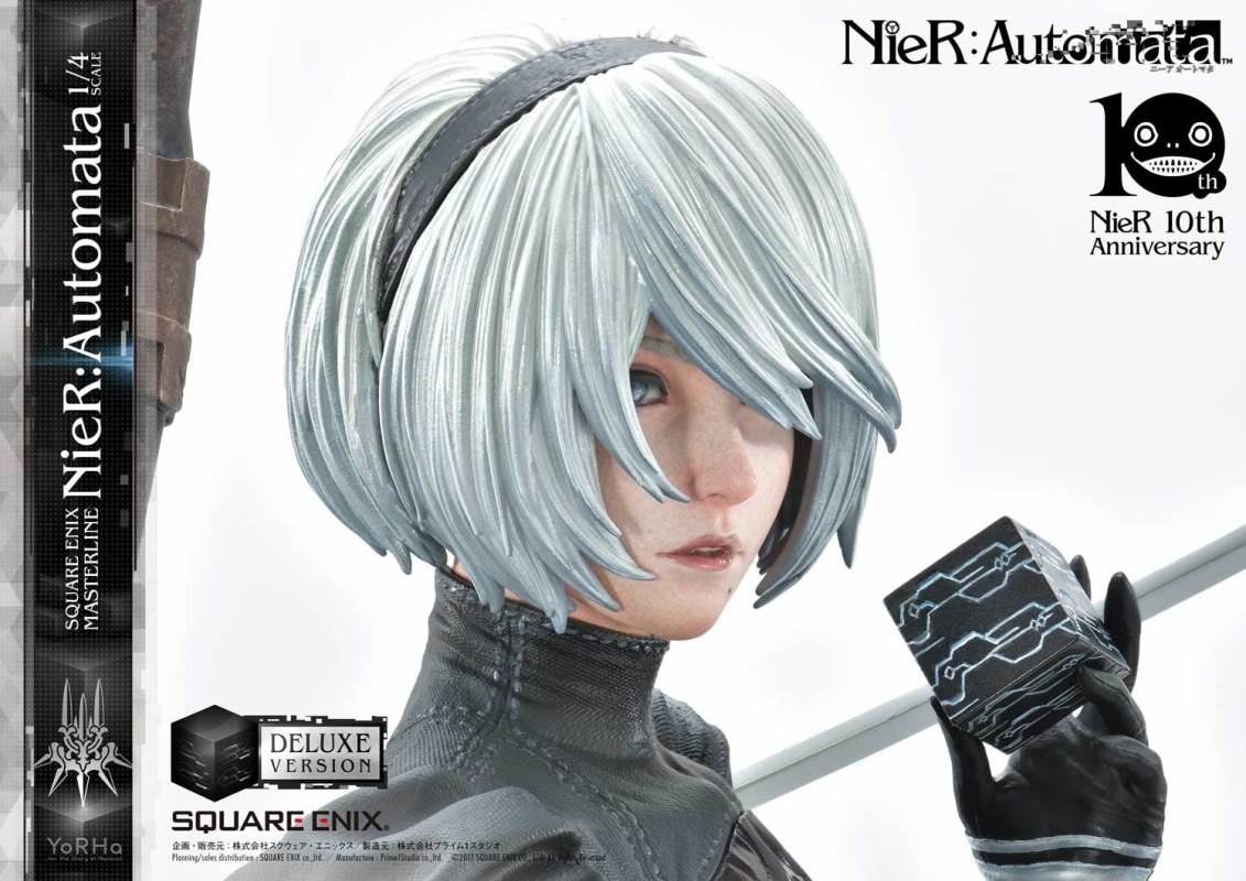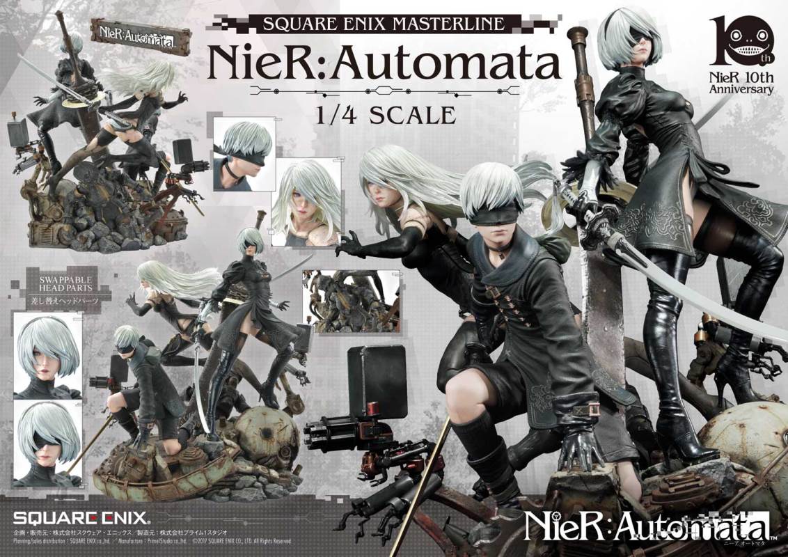 ปล่อยภาพสินค้าแบบเต็ม ๆ มาให้ชมกันแล้ว กับงานปั้นจากเกม Action-RPG ยอดฮิตอย่าง Nier Automata ที่ผลิตขึ้นเพื่อฉลองครบรอบอายุ 10 ปีของเกมนี้ โดยตัวงานปั้นนี้เป็นผลงานการร่วมมือกันระหว่างค่าย Square-Enix ผู้ผลิตเกมนี้ กับค่าย Prime 1 Studio ผู้สร้างงานปั้นยักษ์ใหญ่แห่งญี่ปุ่น ซึ่งถ้าจะบอกว่า งานปั้นนี้ ถือเป็นงานปั้นจากเกม Nier ที่ทำออกมาได้เหมือนกับต้นฉบับมากที่สุดแล้ว... ก็แน่ล่ะ ตัวต้นแบบก็น่าจะนำมาจากตัวละคร 3D ของค่าย Square-Enix โดยตรง ดังนั้น เรื่องรูปร่าง หน้าตา ก็ต้องเหมือนต้นฉบับอย่างแน่นอน!! ที่สำคัญ ตัวชิ้นงานยังนำเอาหุ่นตัวหลักทั้ง 3 ได้แก่ 2B, 9S และ A2 มารวมเข้าด้วยกันในชิ้นเดียว ทำให้งานปั้นนี้ ดูสมบูรณ์แบบเอามาก ๆ!! นอกจากนี้ ถ้าเป็นสินค้ารุ่น Deluxe แล้วล่ะก็ จะมีส่วนหัวและชุดมาให้เปลี่ยนสำหรับหุ่นแต่ละตัวอีกด้วย เรียกว่าถ้าเป็นแฟนพันธ์แท้ของเกมนี้แล้วล่ะก็ เห็นแบบนี้ คงมีโดนใจกันอย่างแน่นอน!!