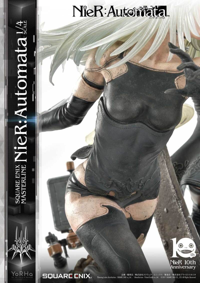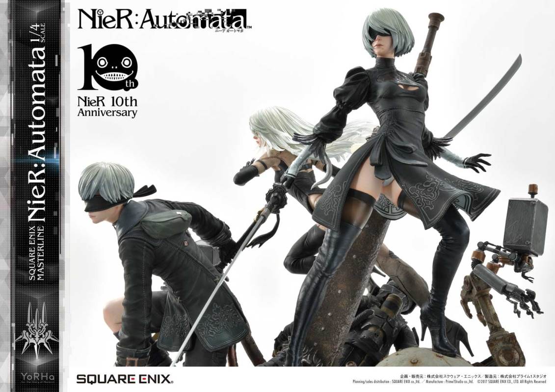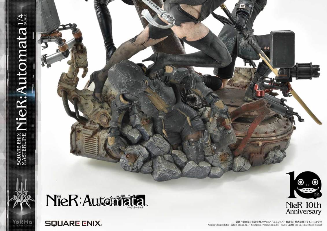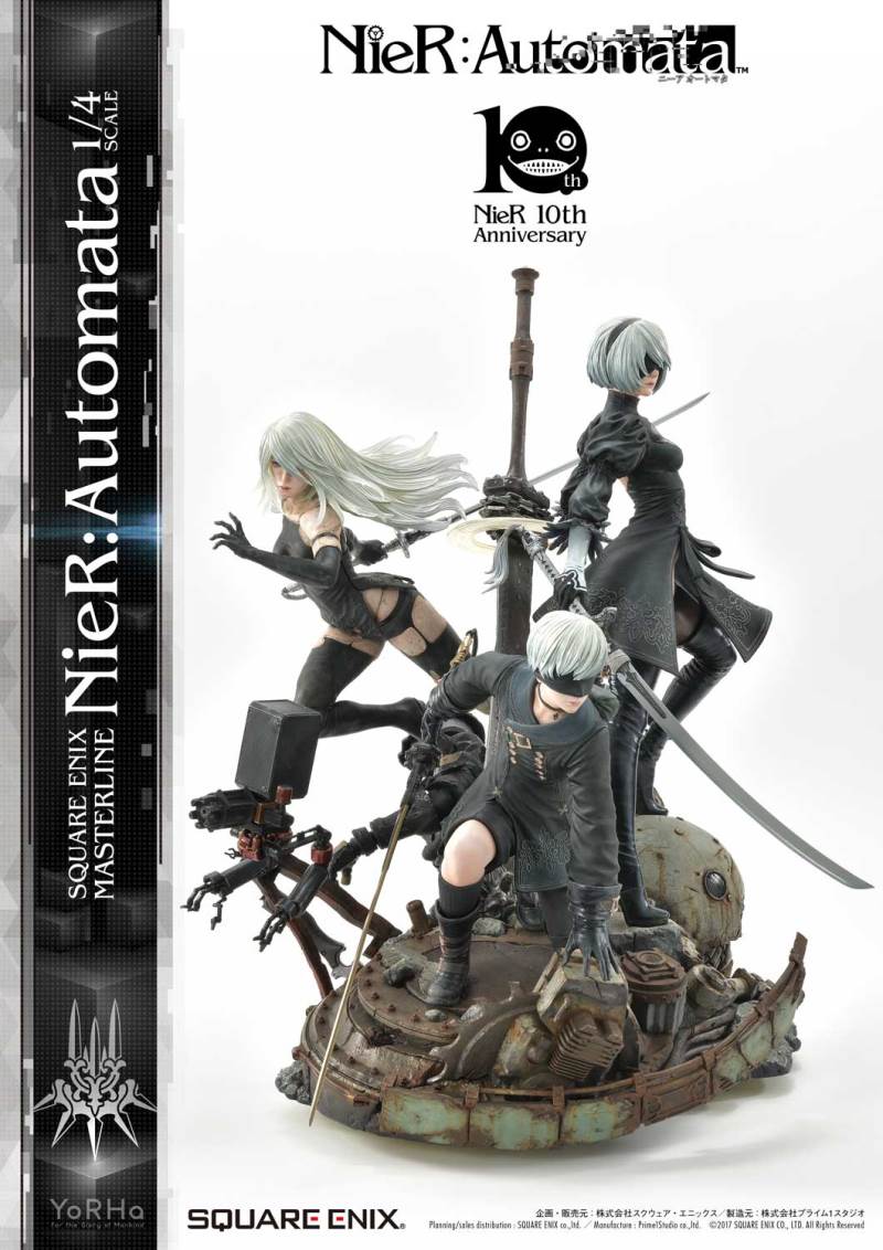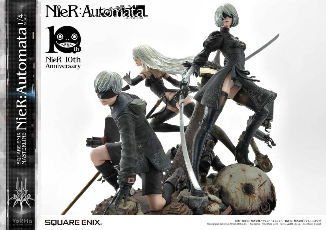 ปล่อยภาพสินค้าแบบเต็ม ๆ มาให้ชมกันแล้ว กับงานปั้นจากเกม Action-RPG ยอดฮิตอย่าง Nier Automata ที่ผลิตขึ้นเพื่อฉลองครบรอบอายุ 10 ปีของเกมนี้ โดยตัวงานปั้นนี้เป็นผลงานการร่วมมือกันระหว่างค่าย Square-Enix ผู้ผลิตเกมนี้ กับค่าย Prime 1 Studio ผู้สร้างงานปั้นยักษ์ใหญ่แห่งญี่ปุ่น ซึ่งถ้าจะบอกว่า งานปั้นนี้ ถือเป็นงานปั้นจากเกม Nier ที่ทำออกมาได้เหมือนกับต้นฉบับมากที่สุดแล้ว... ก็แน่ล่ะ ตัวต้นแบบก็น่าจะนำมาจากตัวละคร 3D ของค่าย Square-Enix โดยตรง ดังนั้น เรื่องรูปร่าง หน้าตา ก็ต้องเหมือนต้นฉบับอย่างแน่นอน!! ที่สำคัญ ตัวชิ้นงานยังนำเอาหุ่นตัวหลักทั้ง 3 ได้แก่ 2B, 9S และ A2 มารวมเข้าด้วยกันในชิ้นเดียว ทำให้งานปั้นนี้ ดูสมบูรณ์แบบเอามาก ๆ!! นอกจากนี้ ถ้าเป็นสินค้ารุ่น Deluxe แล้วล่ะก็ จะมีส่วนหัวและชุดมาให้เปลี่ยนสำหรับหุ่นแต่ละตัวอีกด้วย เรียกว่าถ้าเป็นแฟนพันธ์แท้ของเกมนี้แล้วล่ะก็ เห็นแบบนี้ คงมีโดนใจกันอย่างแน่นอน!!