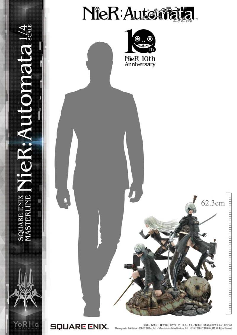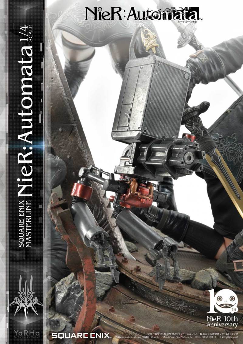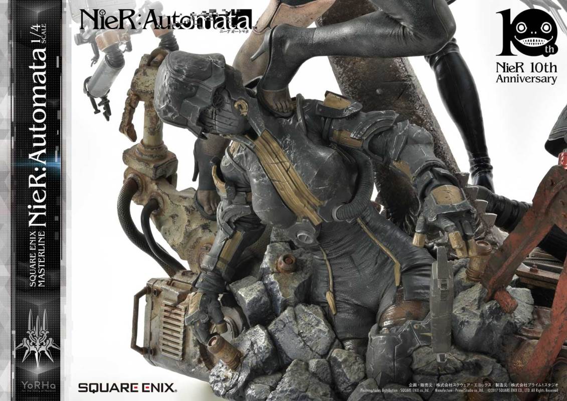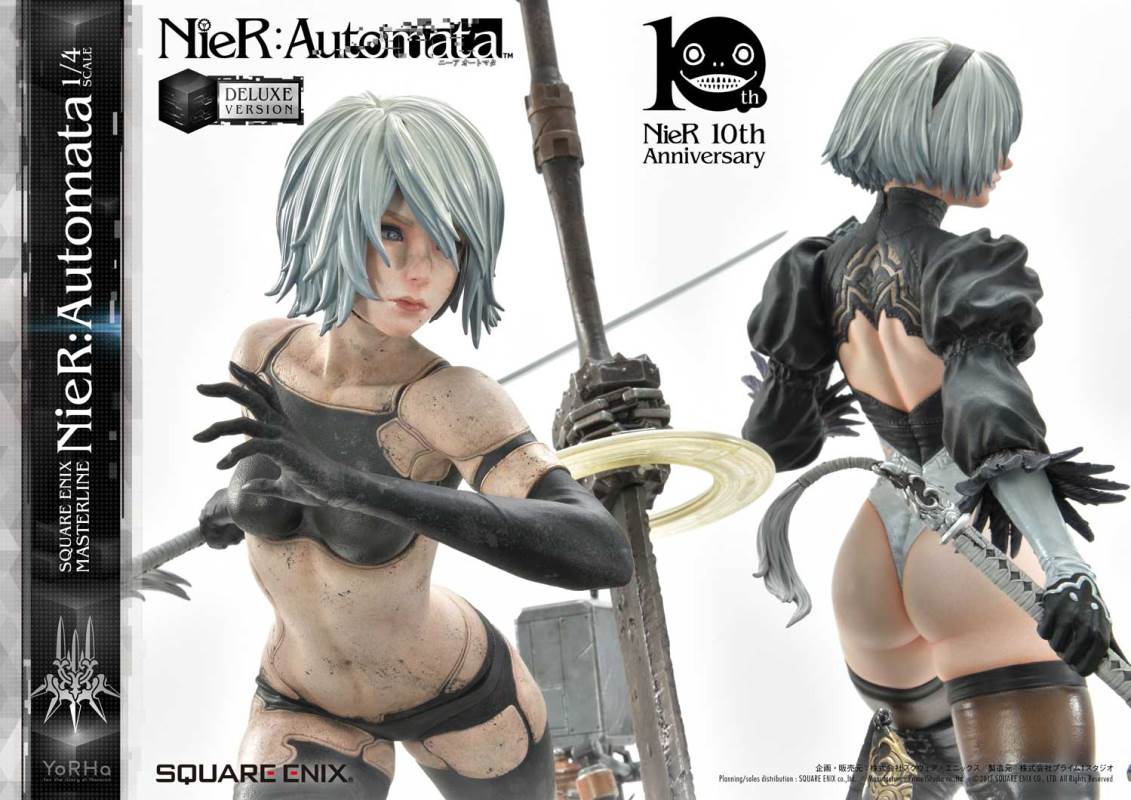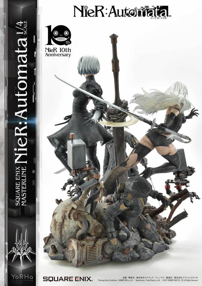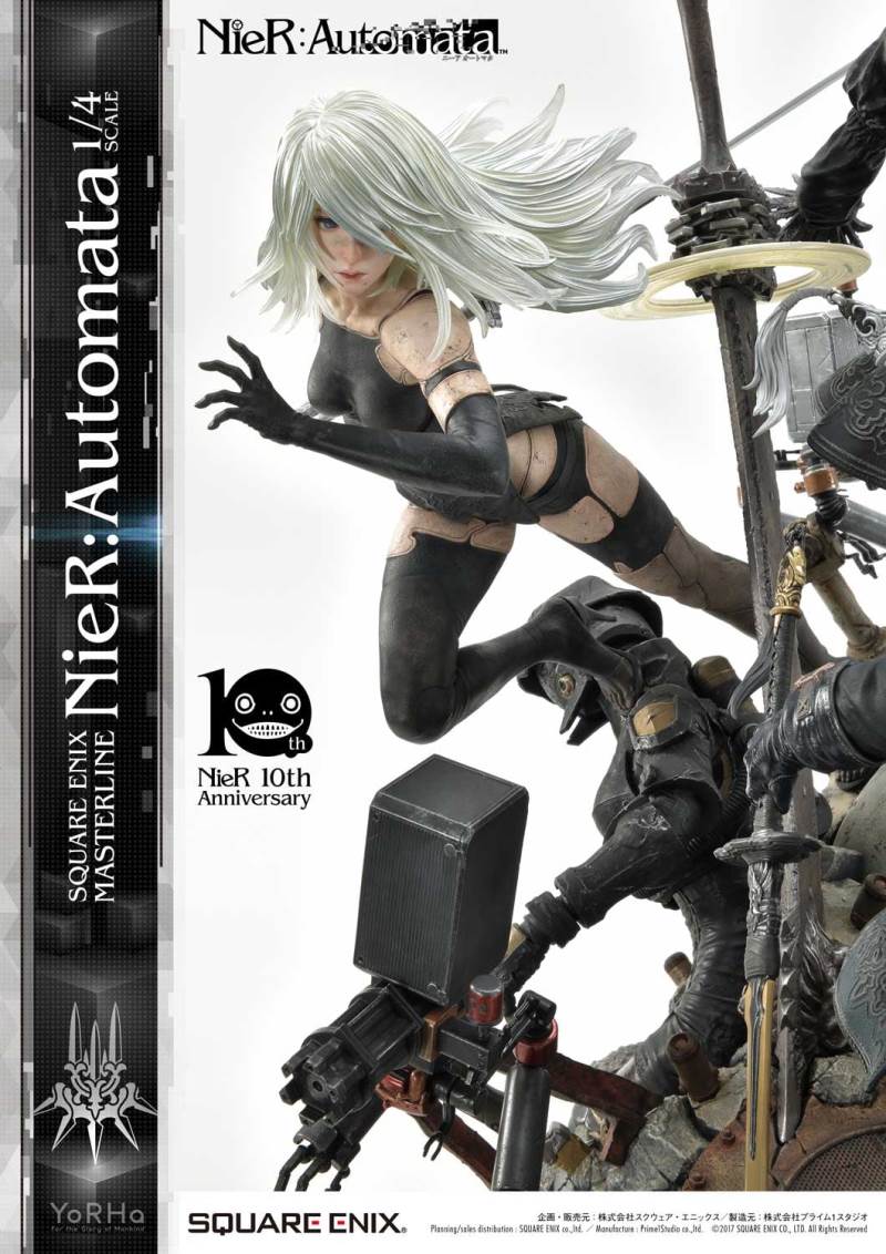 ปล่อยภาพสินค้าแบบเต็ม ๆ มาให้ชมกันแล้ว กับงานปั้นจากเกม Action-RPG ยอดฮิตอย่าง Nier Automata ที่ผลิตขึ้นเพื่อฉลองครบรอบอายุ 10 ปีของเกมนี้ โดยตัวงานปั้นนี้เป็นผลงานการร่วมมือกันระหว่างค่าย Square-Enix ผู้ผลิตเกมนี้ กับค่าย Prime 1 Studio ผู้สร้างงานปั้นยักษ์ใหญ่แห่งญี่ปุ่น ซึ่งถ้าจะบอกว่า งานปั้นนี้ ถือเป็นงานปั้นจากเกม Nier ที่ทำออกมาได้เหมือนกับต้นฉบับมากที่สุดแล้ว... ก็แน่ล่ะ ตัวต้นแบบก็น่าจะนำมาจากตัวละคร 3D ของค่าย Square-Enix โดยตรง ดังนั้น เรื่องรูปร่าง หน้าตา ก็ต้องเหมือนต้นฉบับอย่างแน่นอน!! ที่สำคัญ ตัวชิ้นงานยังนำเอาหุ่นตัวหลักทั้ง 3 ได้แก่ 2B, 9S และ A2 มารวมเข้าด้วยกันในชิ้นเดียว ทำให้งานปั้นนี้ ดูสมบูรณ์แบบเอามาก ๆ!! นอกจากนี้ ถ้าเป็นสินค้ารุ่น Deluxe แล้วล่ะก็ จะมีส่วนหัวและชุดมาให้เปลี่ยนสำหรับหุ่นแต่ละตัวอีกด้วย เรียกว่าถ้าเป็นแฟนพันธ์แท้ของเกมนี้แล้วล่ะก็ เห็นแบบนี้ คงมีโดนใจกันอย่างแน่นอน!!