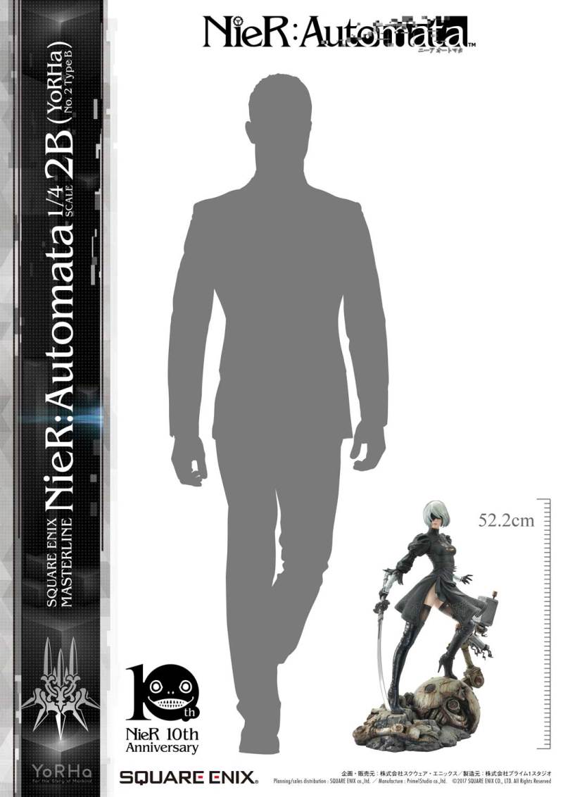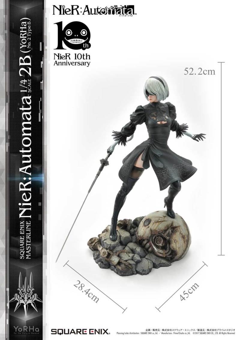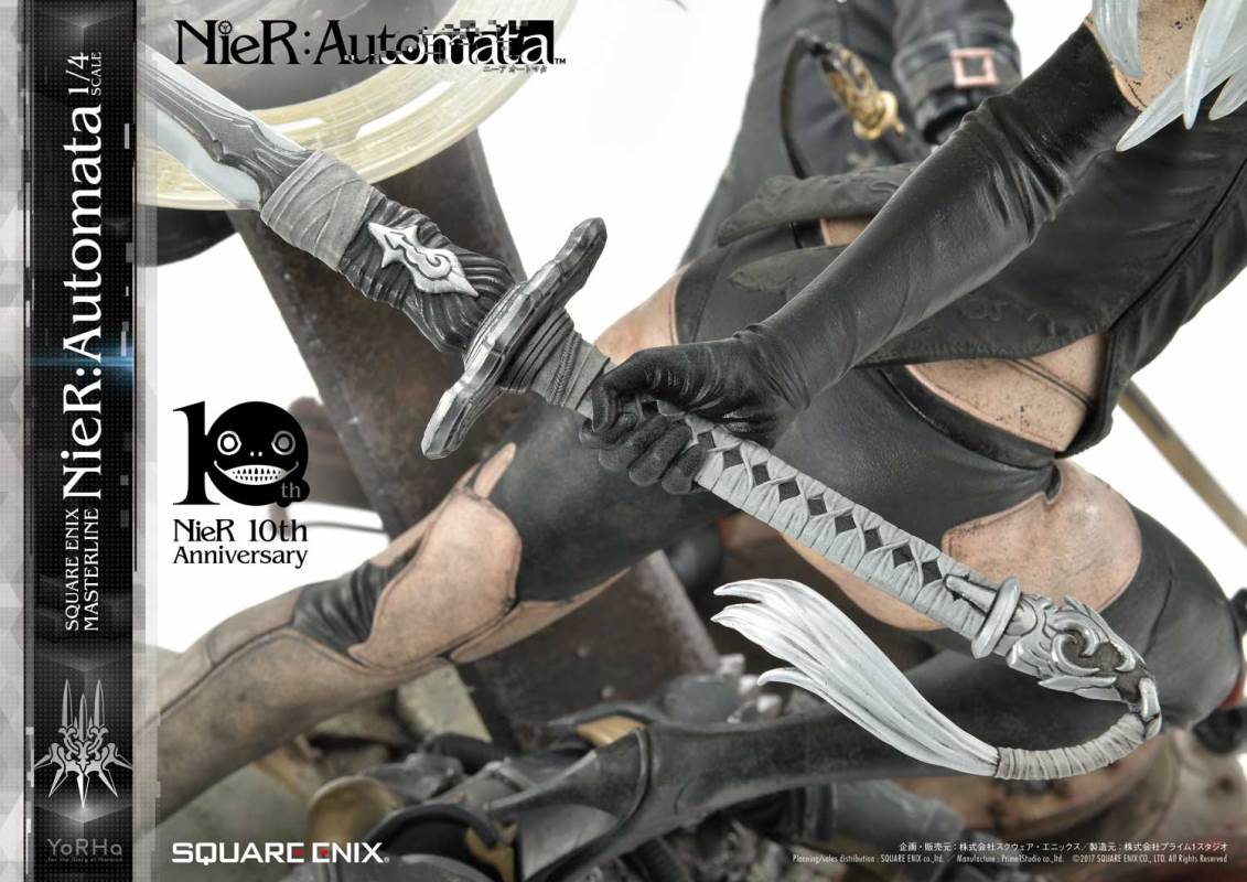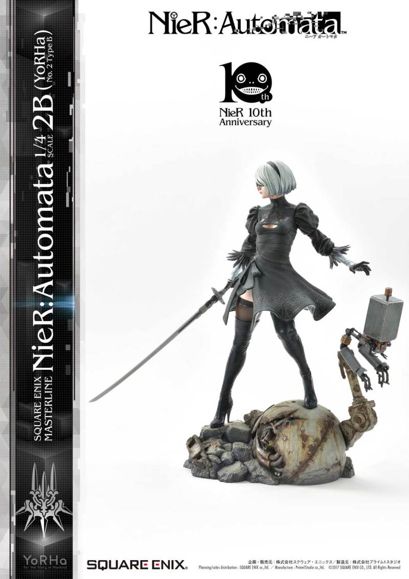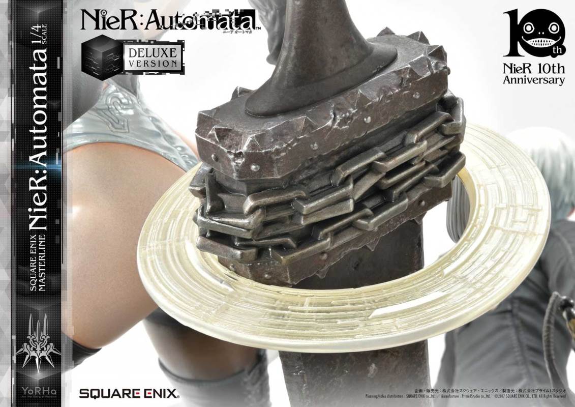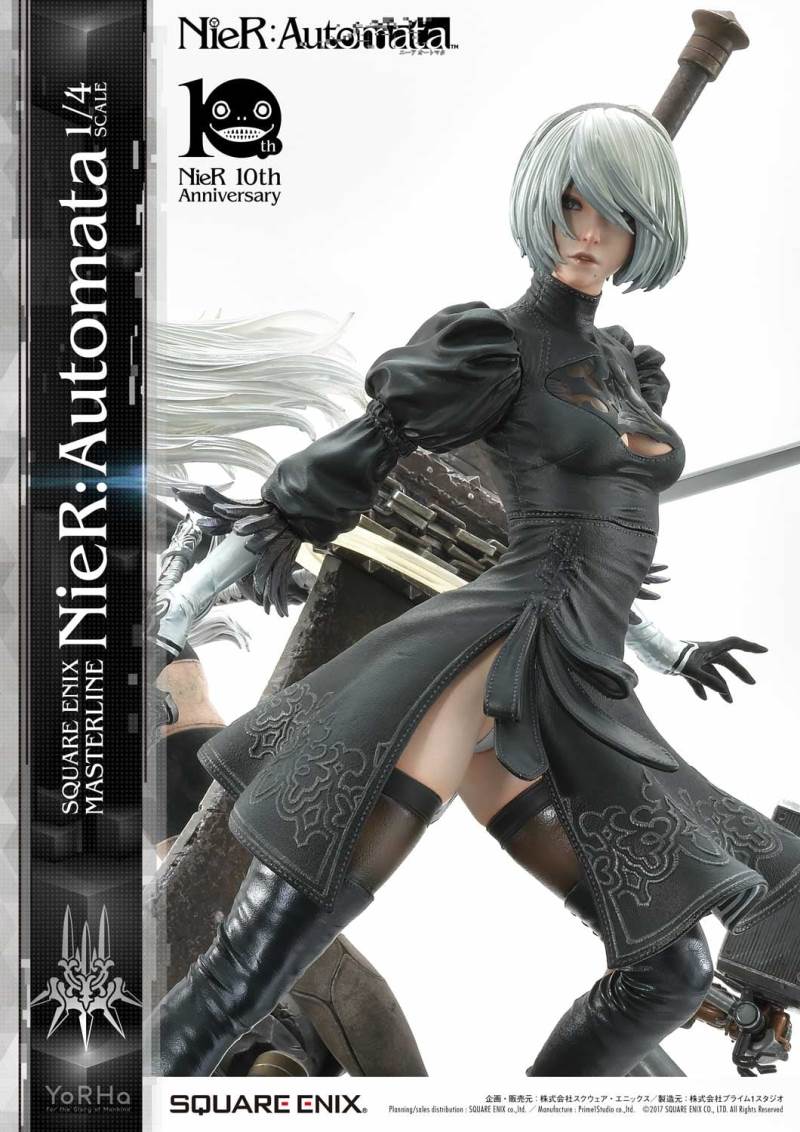 ปล่อยภาพสินค้าแบบเต็ม ๆ มาให้ชมกันแล้ว กับงานปั้นจากเกม Action-RPG ยอดฮิตอย่าง Nier Automata ที่ผลิตขึ้นเพื่อฉลองครบรอบอายุ 10 ปีของเกมนี้ โดยตัวงานปั้นนี้เป็นผลงานการร่วมมือกันระหว่างค่าย Square-Enix ผู้ผลิตเกมนี้ กับค่าย Prime 1 Studio ผู้สร้างงานปั้นยักษ์ใหญ่แห่งญี่ปุ่น ซึ่งถ้าจะบอกว่า งานปั้นนี้ ถือเป็นงานปั้นจากเกม Nier ที่ทำออกมาได้เหมือนกับต้นฉบับมากที่สุดแล้ว... ก็แน่ล่ะ ตัวต้นแบบก็น่าจะนำมาจากตัวละคร 3D ของค่าย Square-Enix โดยตรง ดังนั้น เรื่องรูปร่าง หน้าตา ก็ต้องเหมือนต้นฉบับอย่างแน่นอน!! ที่สำคัญ ตัวชิ้นงานยังนำเอาหุ่นตัวหลักทั้ง 3 ได้แก่ 2B, 9S และ A2 มารวมเข้าด้วยกันในชิ้นเดียว ทำให้งานปั้นนี้ ดูสมบูรณ์แบบเอามาก ๆ!! นอกจากนี้ ถ้าเป็นสินค้ารุ่น Deluxe แล้วล่ะก็ จะมีส่วนหัวและชุดมาให้เปลี่ยนสำหรับหุ่นแต่ละตัวอีกด้วย เรียกว่าถ้าเป็นแฟนพันธ์แท้ของเกมนี้แล้วล่ะก็ เห็นแบบนี้ คงมีโดนใจกันอย่างแน่นอน!!