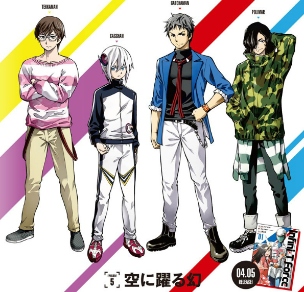 ทีมงานของ Tatsunoko Productions ได้เริ่มปล่อยภาพดีไซน์ตัวละครของฮีโร่ทั้ง 4 ในชุดคอสตูม ของอนิเมะซีจี  Infini-T Force ออกมาให้ชมกันแล้ว โดยมีภาพและรายละเอียดตัวละครดังต่อไปนี้