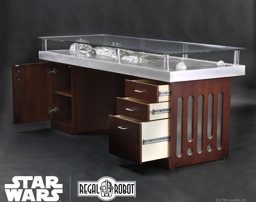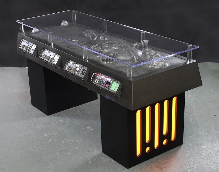 อันนี้ เอาร่างของฮานโซโล ที่โดนจับแช่แข็งในคาร์บอนมาใส่กรอบทำเป็นโต๊ะเช่นกัน