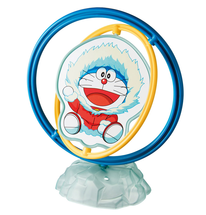 ของเล่นชิ้นนี้จะแปลกหน่อย เวลาวางก้อนน้ำแข็งลงบนพื้นเรียบ ๆ แล้วนำโดเรมอนไปวางใกล้ ๆ จะทำให้ก้อนน้ำแข็งหมุนไปรอบ ๆ