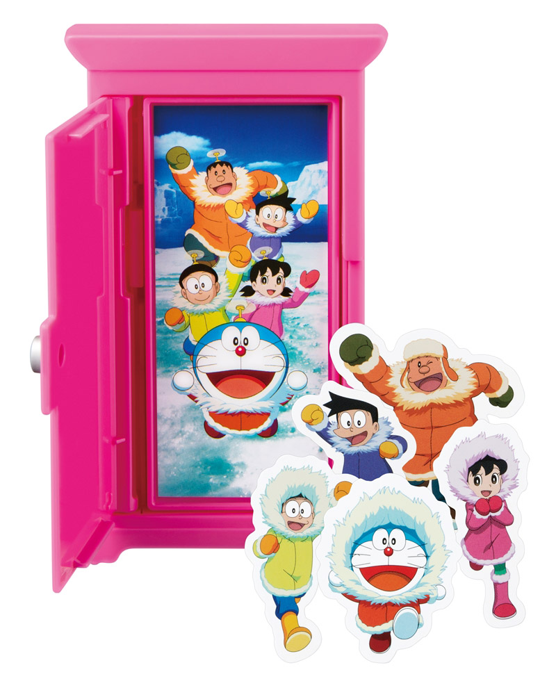 กับประตูวิเศษไปที่ไหนก็ได้ ถ้าเรากดไปที่ปุ่มด้านซ้ายของประตู ภาพที่เปิดออกมาจะถูกสลับเป็นอีกภาพนึง โดยภาพที่เห็นจะมีอยู่ 2 ภาพ ได้แก่ ภาพที่พวกโดเรมอนอยู่ขั้วโลกเหนือ กับอีกภาพนึงเป็นภาพในห้องของโนบิตะ