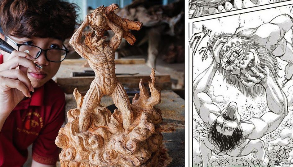 มีมาให้ดูอีกแล้ว กับผลงานแกะสลักไม้ให้เป็นงานปั้นโดยงวดนี้ผลงานที่แกะโชว์ให้ดูแบบเทพ ๆ ทำออกมาเป็นลาย Attack On Titan โดยนำต้นแบบจากไททั่นเอเรน ที่สู้กับไททันจอว์ในมังงะ มาทำจนได้ออกมาเป็นงานแกะสลักที่ดูดีเลยทีเดียว เห็นแล้วต้องยกมือให้กับฝีมือของนายคนนี้จริง ๆ!!
