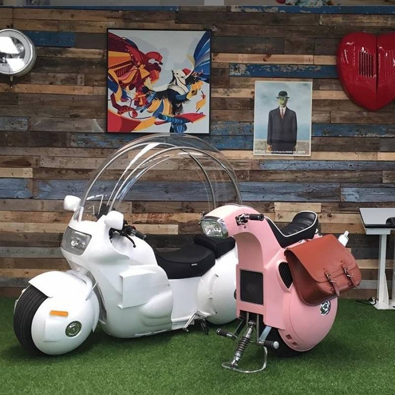 ด้านข้างก็มีรถมอเตอร์ไซค์อีกคัน(สีชมพู) ที่ออกแบบตามในการ์ตูนเหมือนกัน