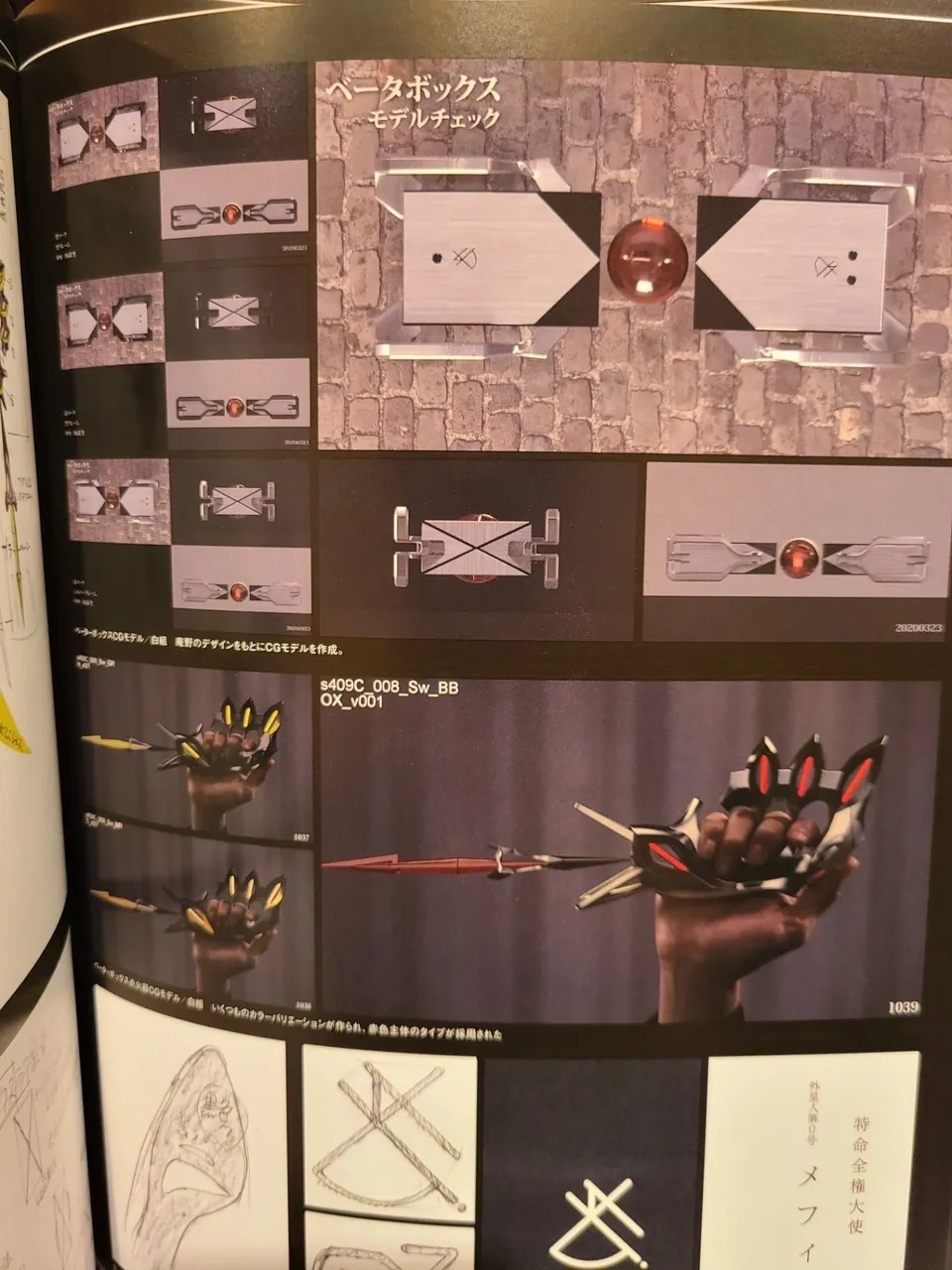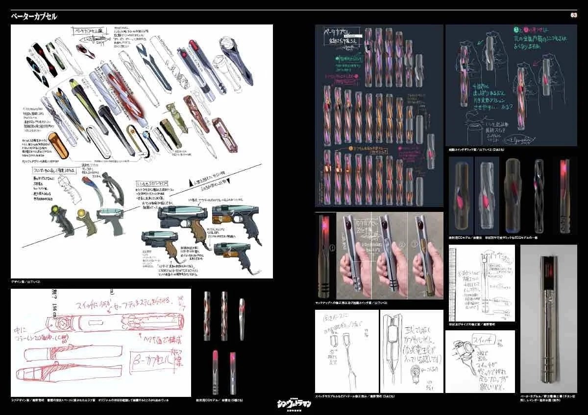 งานร่างดีไซน์ของอุลตร้าแมนและอุปกรณ์ต่าง ๆ