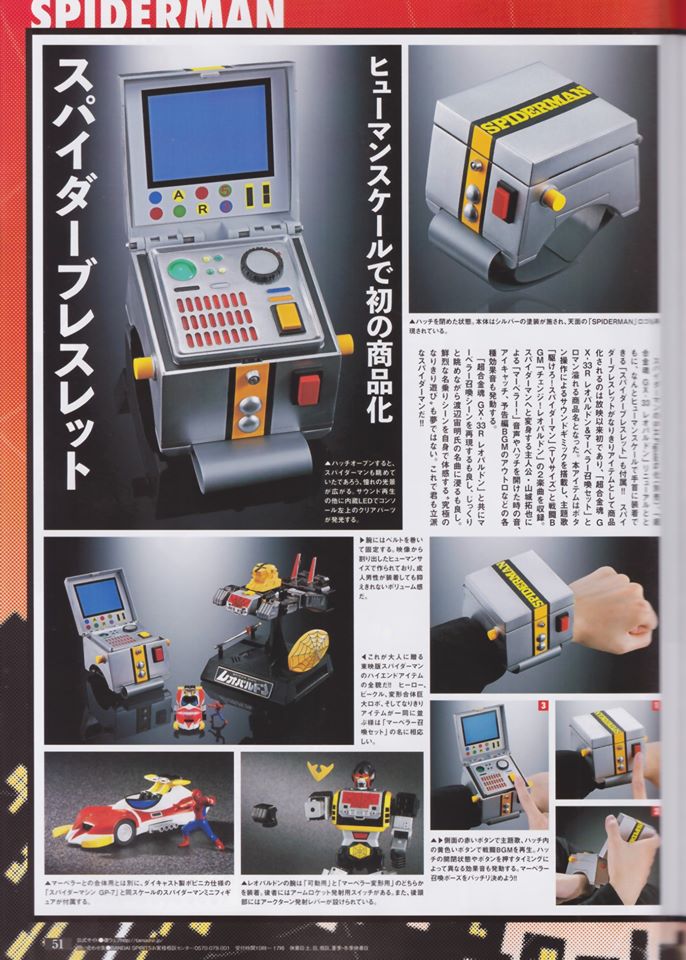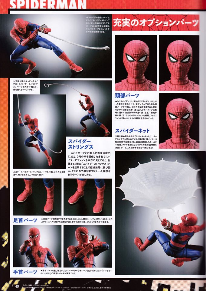 ด้านล่างนี้คือภาพแสกนของสินค้า S.H.Figuarts Spider-Man และของเล่นหุ่นยนต์จากซีรีส์ Soul of Chogokin ซึ่งก็คือ Leopardon & Marveler ยานพาหนะและหุ่นยนต์คู่ใจของสไปเดอร์แมนในเรื่องนี้นั่นเอง