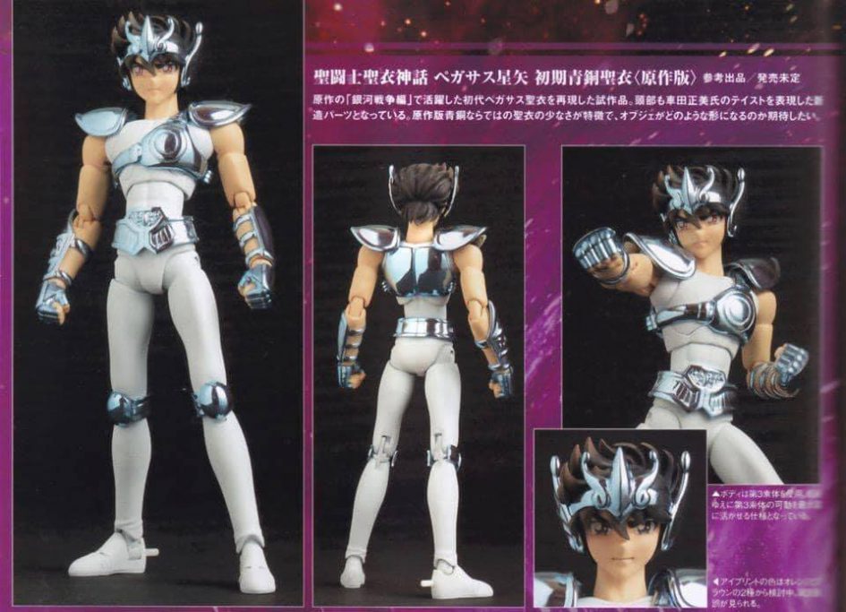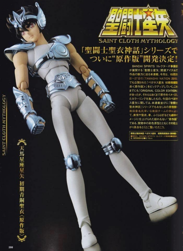 มีภาพแสกนสินค้าใหม่จากซีรีส์ Cloth Myth ค่าย Bandai มาอีกแล้ว งวดนี้เป็นตัวเซย่า Pegasus Seiya Original Color Edition ซึ่งเป็นพระเอกของเรื่องเลย โดยชุดที่ทำออกมาจะเป็นไลน์คลาสสิก ดีไซน์ชุดเกราะเป็นสีบรอนซ์เงิน มาจากในการ์ตูนมังงะโดยตรง เรียกได้ว่าเป็นชุดเกราะต้นแบบของเซย่าเลยก็ว่าได้