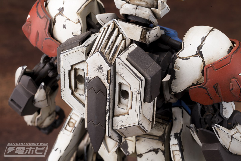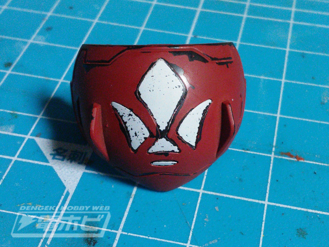 ภาพจากด้านหน้า จะเห็นโครงที่อยู่รอบคอและบ่า ถูกลงสี texture ให้เหมือนเหล็ก รวมถึงตรงกลางหน้าอก ก็ weathering ให้เห็นสีถลอกแบบเหล็ก "สีเงิน" อย่างปราณีต