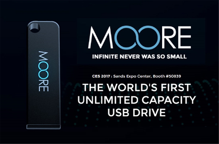 ในงาน Consumer Electronics show (CES) ที่จัดขึ้นในวันที่ 3 มกราคมที่ลาสเวกัส เนวาดา อเมริกา ที่พื้นที่ "Eureka Park" ได้มีการนำ USB memory ที่ระบุว่า "จุได้แบบไม่จำกัด" (unlimited capacity) โดยใช้ชื่อสินค้าว่า "Moore" ซึ่งมีความหมายสื่อถึง "กฎของมัวร์" (Moore's Law)