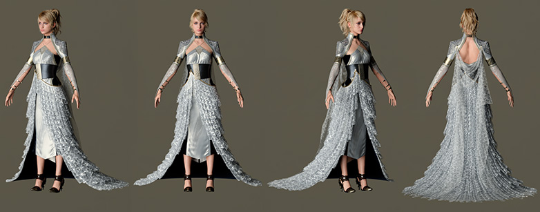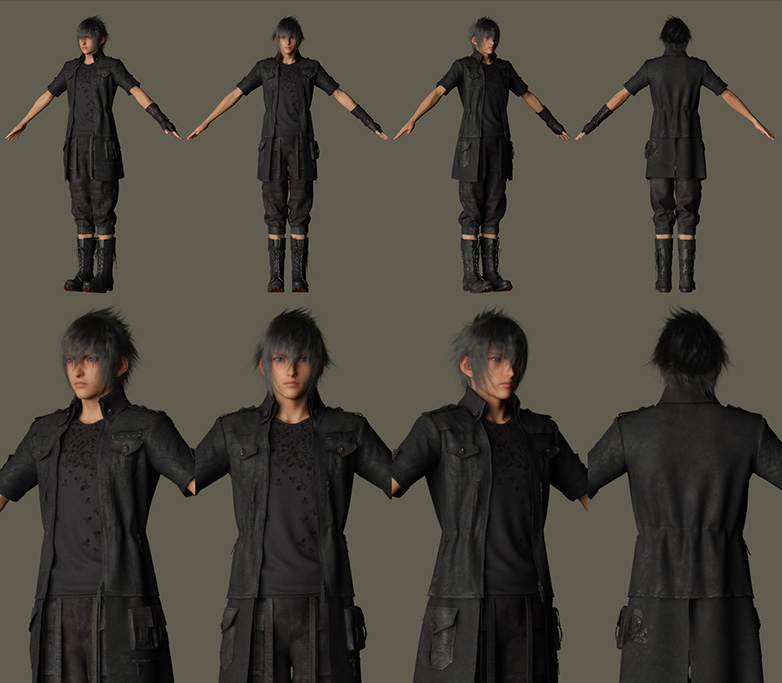 ในเว็บของ SquareEnix ส่วนของ Final Fantasy XV ซึ่งมีการปล่อยรายละเอียของ 3D CG ตัวละครแต่ละคน ซึ่งมีเสื้อผ้าและเครื่องแต่งตัวอะไรยังไงบ้าง โดยเฉพาะในส่วนของตัวละครในภาพยนต์ KINGSGLAIVE FINAL FANTASY XV จะมีการปล่อย วีดีโอ CG ให้เห็นแบบ 180 องศากันเลยทีเดียว