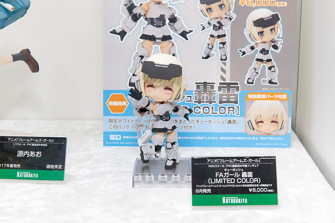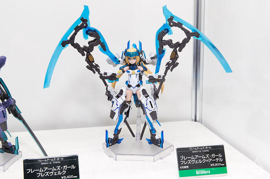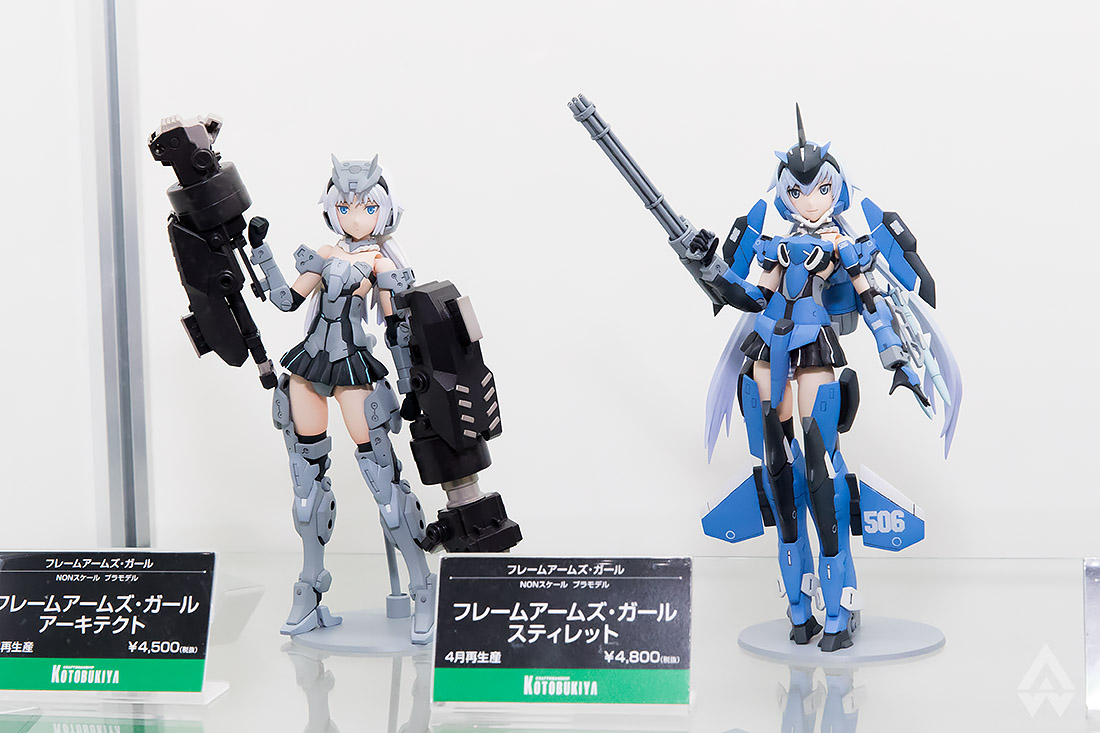 งานเด่น ๆ ในบูธ น่าจะเป็นฟิกเกอร์จากซีรีส์ Fate Grand Order และพลาสติกโมเดล Frame Arm Girl ที่กำลังจะมีอนิเมะฉายในปีนี้