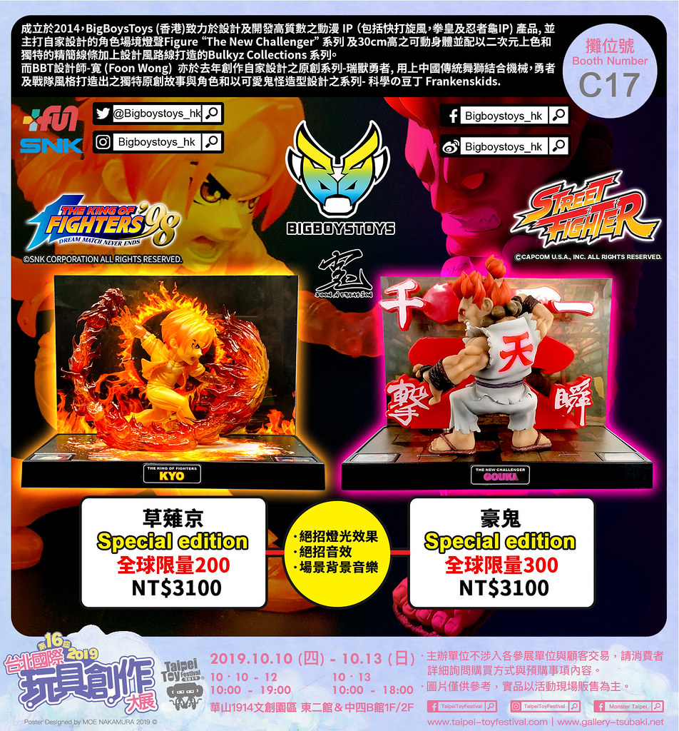 สินค้าทั้งหมดนี้ จะถูกนำไปจัดแสดงโชว์ ในงาน Taipei International Toy Creation Exhibition TTF2019 ที่ทกำลังจะมีขึ้นเร็ว ๆ นี้ โดยบูธของ BigBoysToys จะอยู่ที่บูธ C17