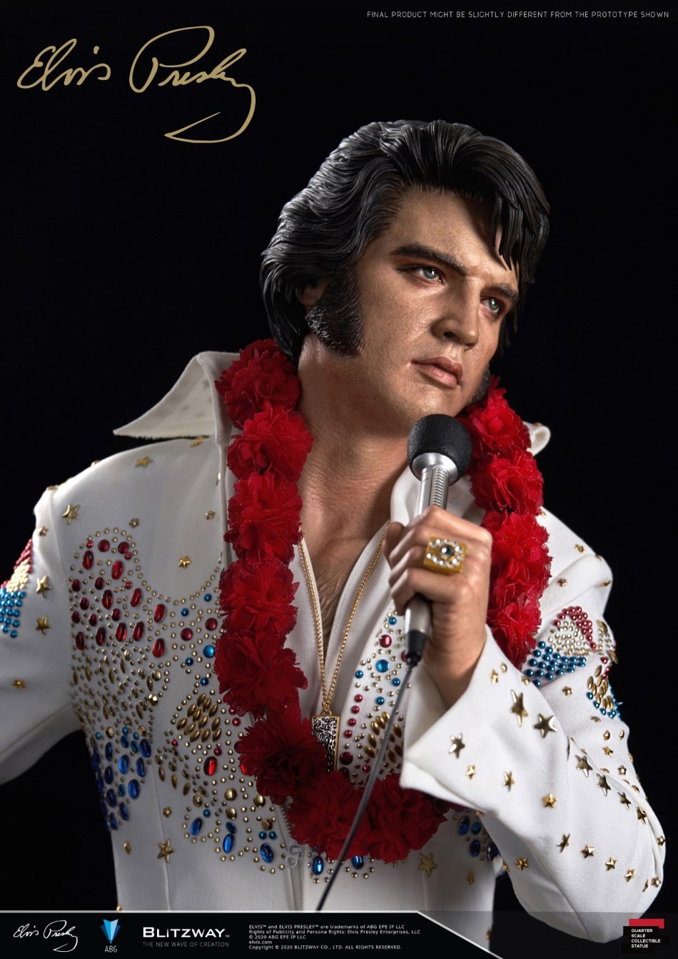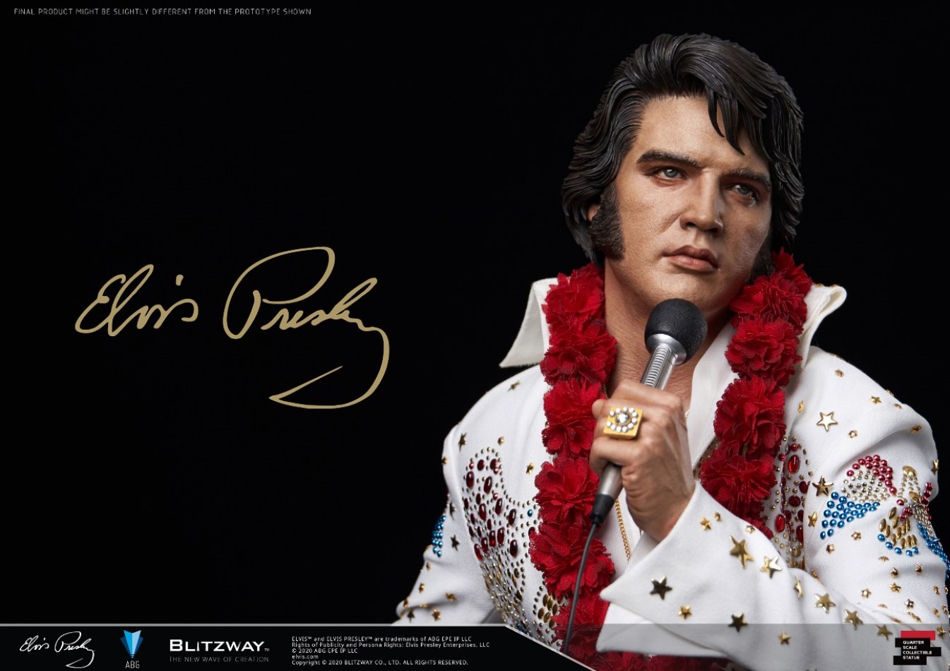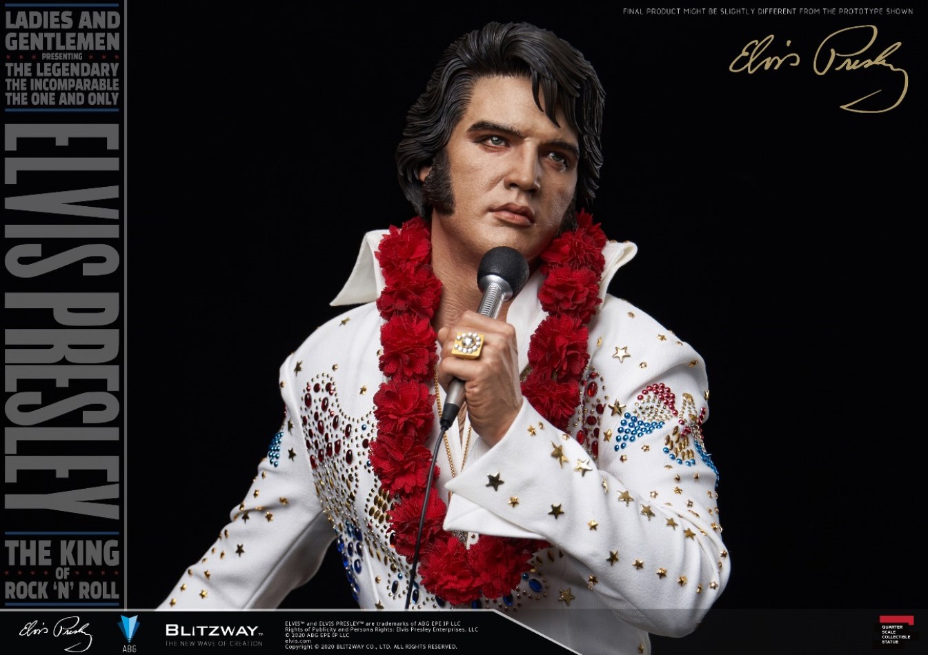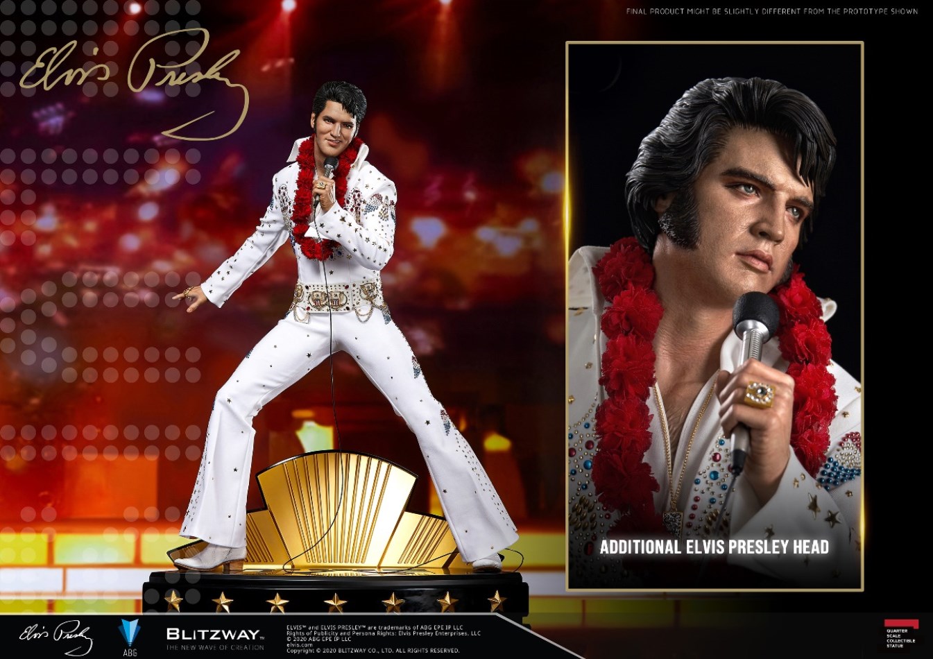 ถือเป็นข่าวดีต้อนรับปีใหม่ สำหรับคนที่สั่งจองงานปั้นของนักร้องแนวร็อคแอนด์โรลชื่อดังตลอดกาลอย่าง Elvis Presley ของค่าย Blitzway ซึ่งช่วงที่ผ่านมา หลังจากที่ทางค่ายได้เปิดรับจองงานปั้นนี้ ก็มีนักสะสมหลายคนเม้นไปทางค่ายว่ารูปลักษณ์ของงานปั้นส่วนหัวของเอลวิสดูเด็กเกินไปและดูไม่ค่อยเข้ากันกับเครื่องแต่งกายสีขาวคลาสสิกของเขา ทำให้ทาง Blitzway ตัดสินใจทำหัวของเอลวิสเพิ่มมาให้อีกหนึ่งหัวฟรีกันไปเลยเพื่อตอนแทนสำหรับแฟน ๆ ที่สนับสนุนงานปั้นของค่ายนี้ด้วยดีเสมอมา