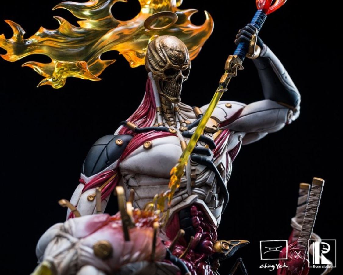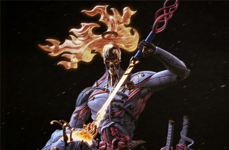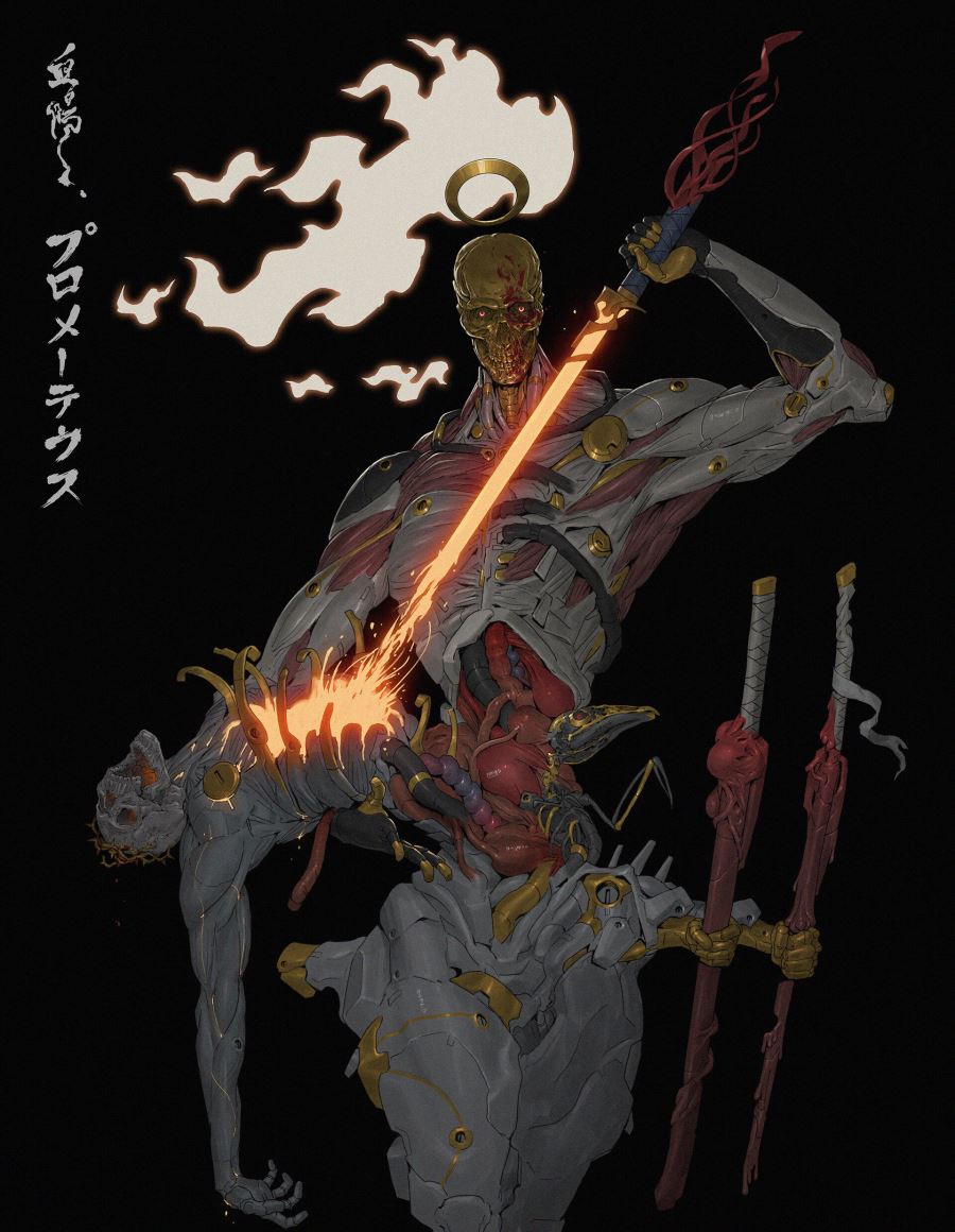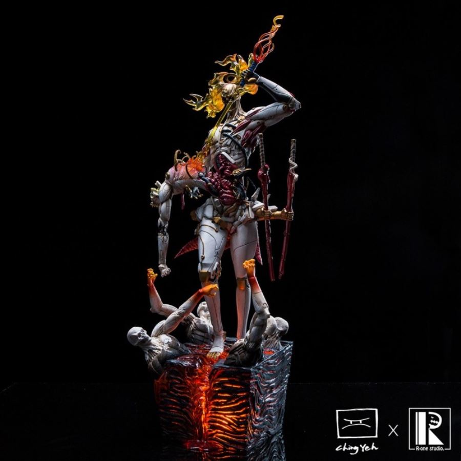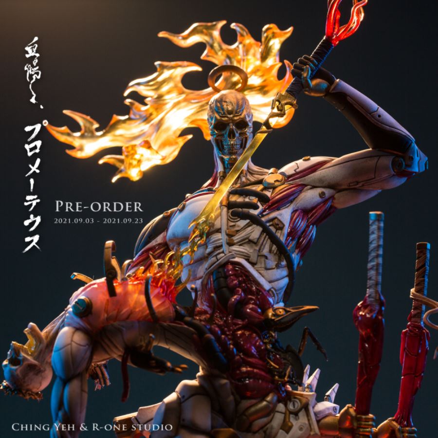 โดยงานปั้นชิ้นนี้มีชื่อว่า "Blood Sun: Prometheus" ถูกออกแบบโดย Ching Yeh ซึ่งตัวชิ้นงานนั้นได้รับแรงบันดาลใจจาก Prometheus เทพผู้ขโมยไฟเพื่อมนุษย์ในตำนานของเทพเจ้ากรีก แต่มีการนำมาดัดแปลงให้มีลักษณะที่ดูเหมือนกึ่งปีศาจกึ่งหุ่นยนต์ ที่กำลังดึงดาบแห่งเปลวเพลิงออกจากร่างของศพ ซึ่งตัวงานปั้นจริงจะมีขนาดสูง 46 ซม. ประกอบไปด้วยชิ้นส่วนของเรซิ่นกว่า 58 ชิ้น และทางค่ายจะวางจำหน่ายแบบโมเดลดิบให้ไปต่อและลงสีด้วยตนเอง