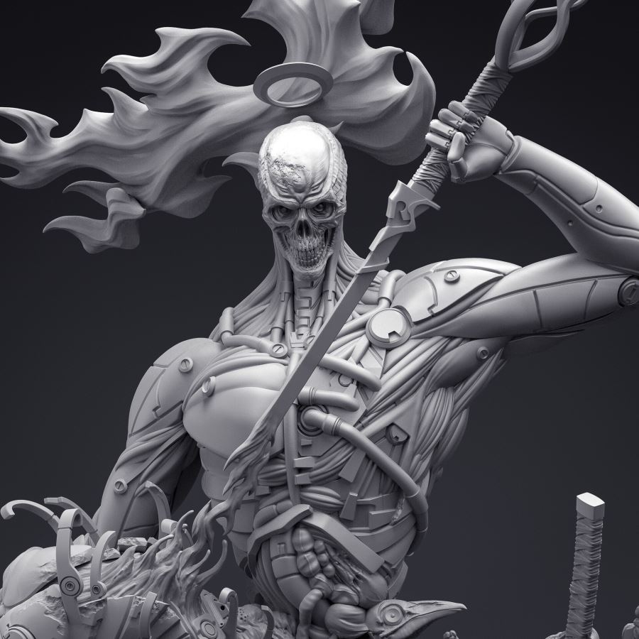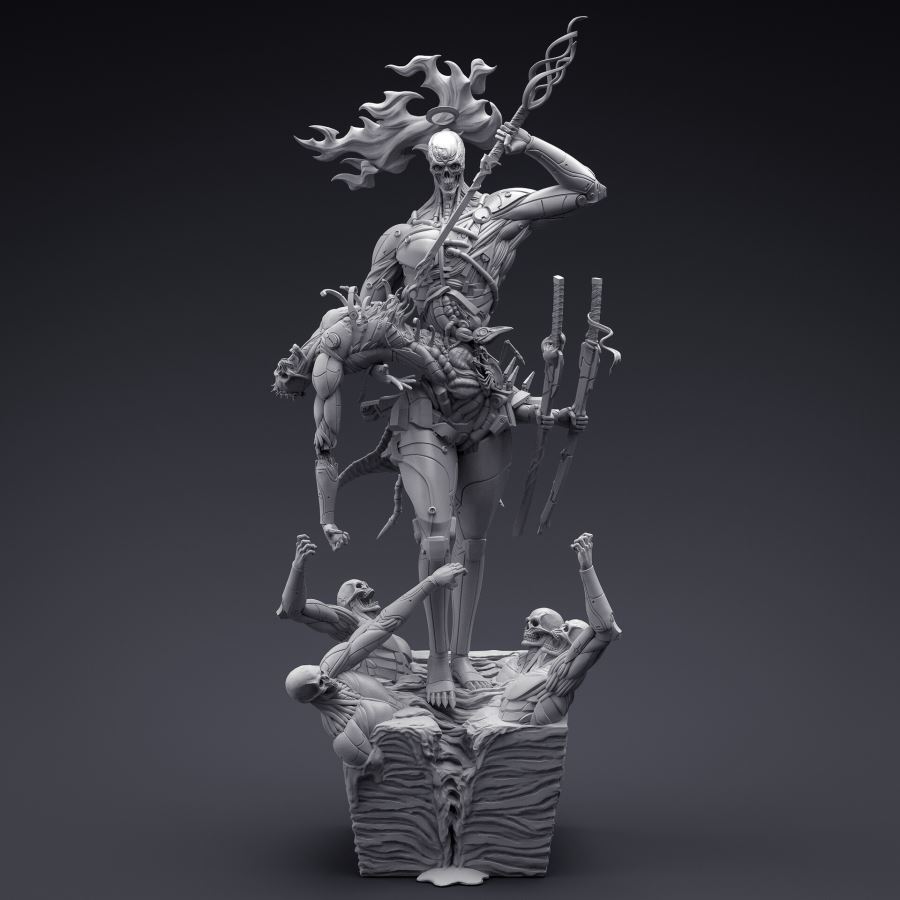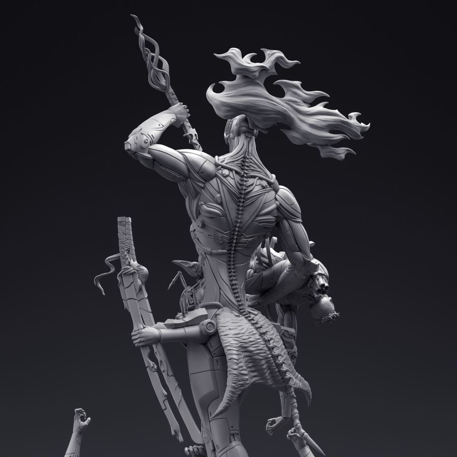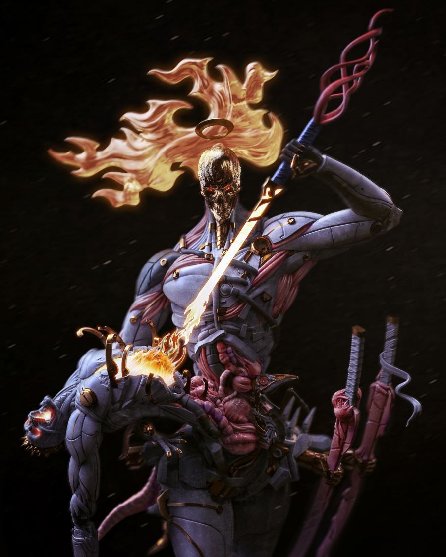 โดยงานปั้นชิ้นนี้มีชื่อว่า "Blood Sun: Prometheus" ถูกออกแบบโดย Ching Yeh ซึ่งตัวชิ้นงานนั้นได้รับแรงบันดาลใจจาก Prometheus เทพผู้ขโมยไฟเพื่อมนุษย์ในตำนานของเทพเจ้ากรีก แต่มีการนำมาดัดแปลงให้มีลักษณะที่ดูเหมือนกึ่งปีศาจกึ่งหุ่นยนต์ ที่กำลังดึงดาบแห่งเปลวเพลิงออกจากร่างของศพ ซึ่งตัวงานปั้นจริงจะมีขนาดสูง 46 ซม. ประกอบไปด้วยชิ้นส่วนของเรซิ่นกว่า 58 ชิ้น และทางค่ายจะวางจำหน่ายแบบโมเดลดิบให้ไปต่อและลงสีด้วยตนเอง