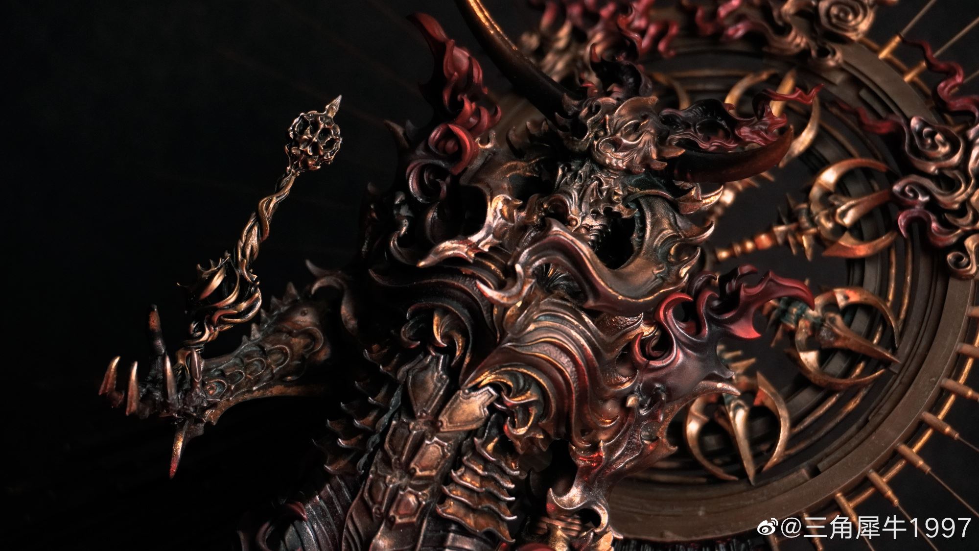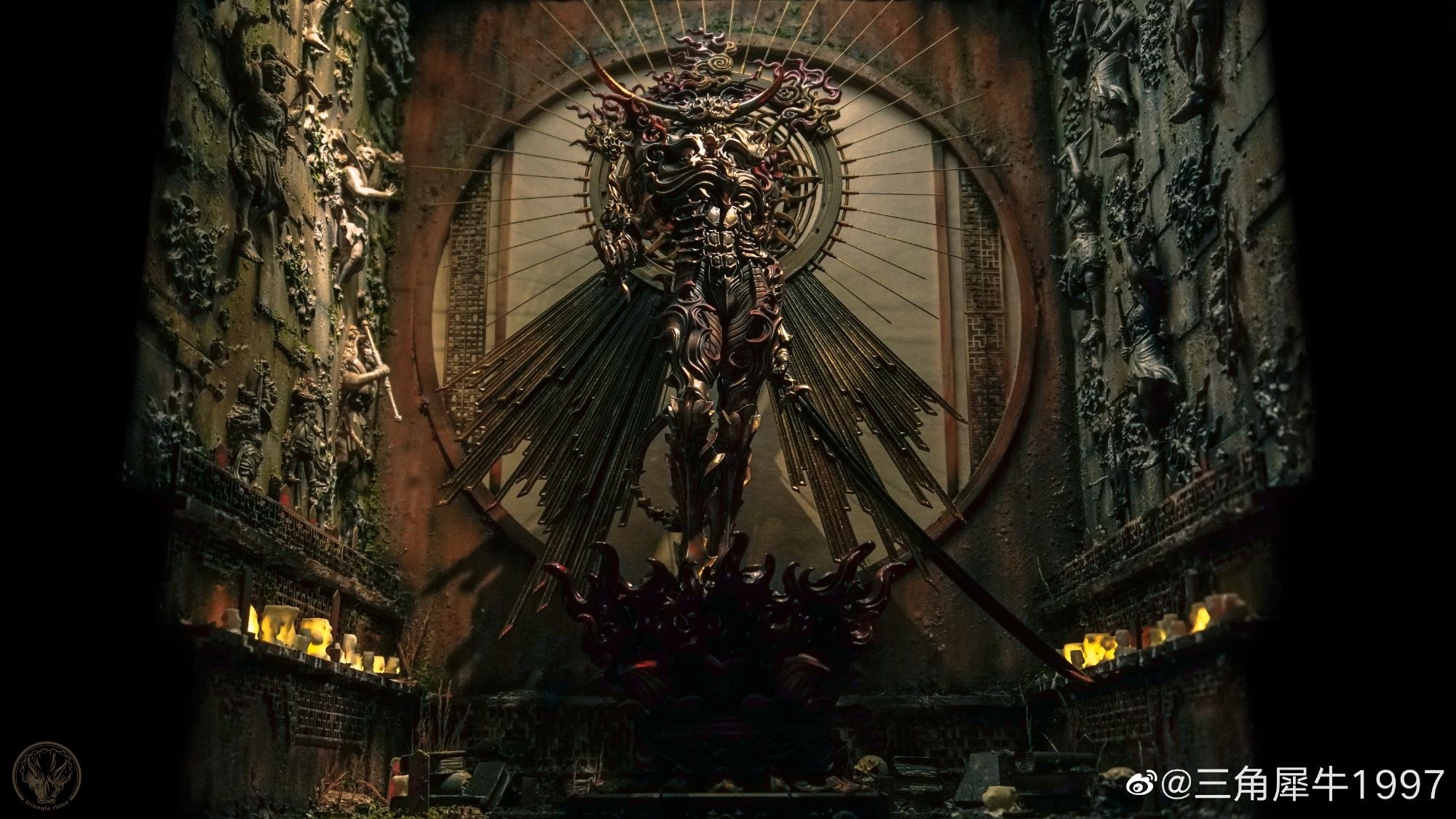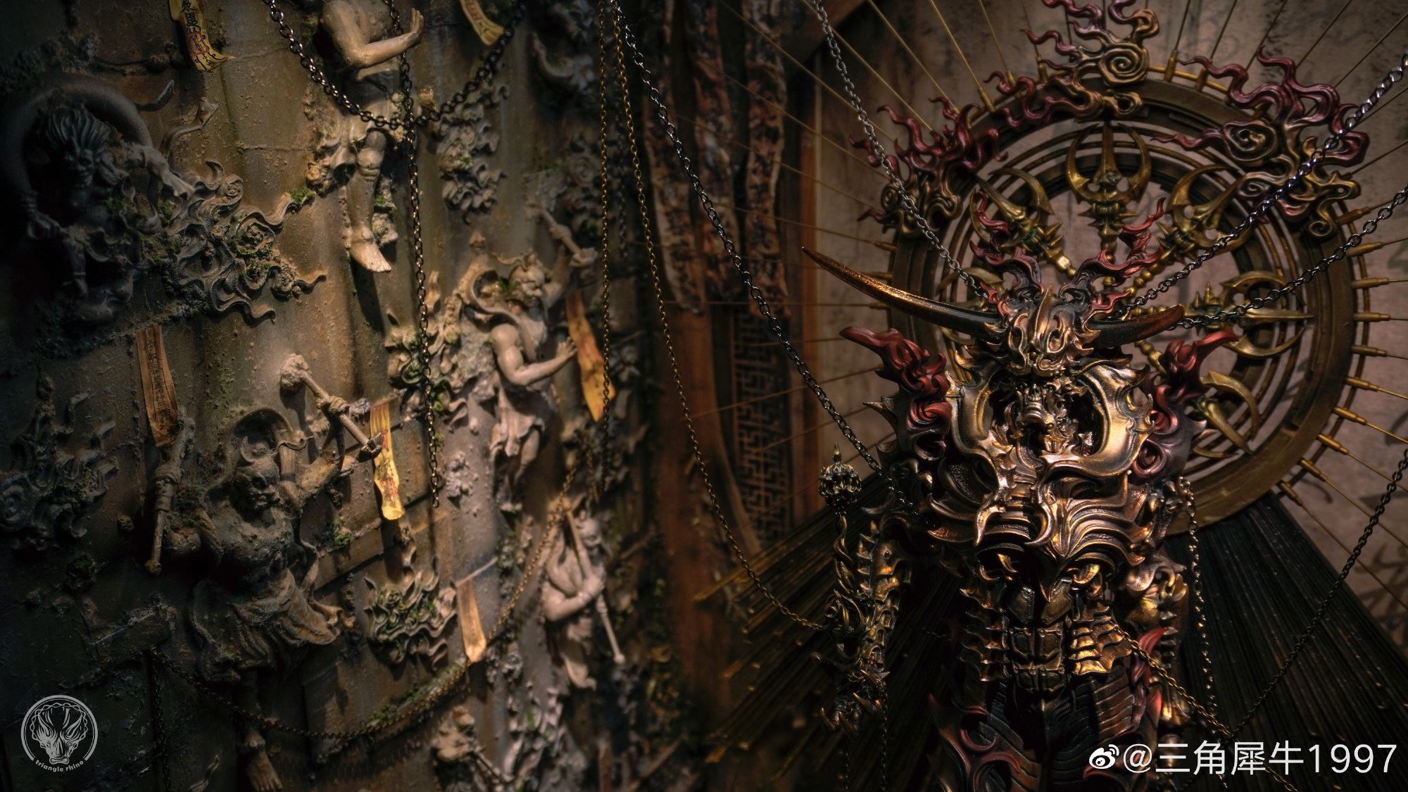 "Flaming Pluto Harry Harakyaki" งานปั้นออริจินัลสุดอาร์ตสไตล์ดาร์คแฟนตาซี ที่เราเคยนำรายละเอียดมาให้ชมกันครั้งนึงแล้ว (คลิกอ่านรายละเอียดเดิมได้ที่นี่) ถูกนำมาสร้างเป็นไดโอรามาซีนสุดเจ๋งโดยเป็นผลงานของอาร์ติสชาวจีนที่ใช้ชื่อว่า "Triangular Rhino 1997" (三角犀牛1997) ซึ่งใช้เวลากว่า 3 เดือนในการสร้างแบบจำลองนี้ขึ้นมา และบอกได้เลยว่า มันดูเยี่ยมมากจริง ๆ ไม่ว่าจะเป็นรายละเอียดการลงสีของงานปั้นต้นแบบ และองค์ประกอบต่าง ๆ ของฉาก พูดไปอาจจะไม่เห็นภาพ แต่ลองไปดูรายละเอียดแบบเต็ม ๆ ที่ด้านล่างนี้ด้วยตาตัวเองจะดีกว่า