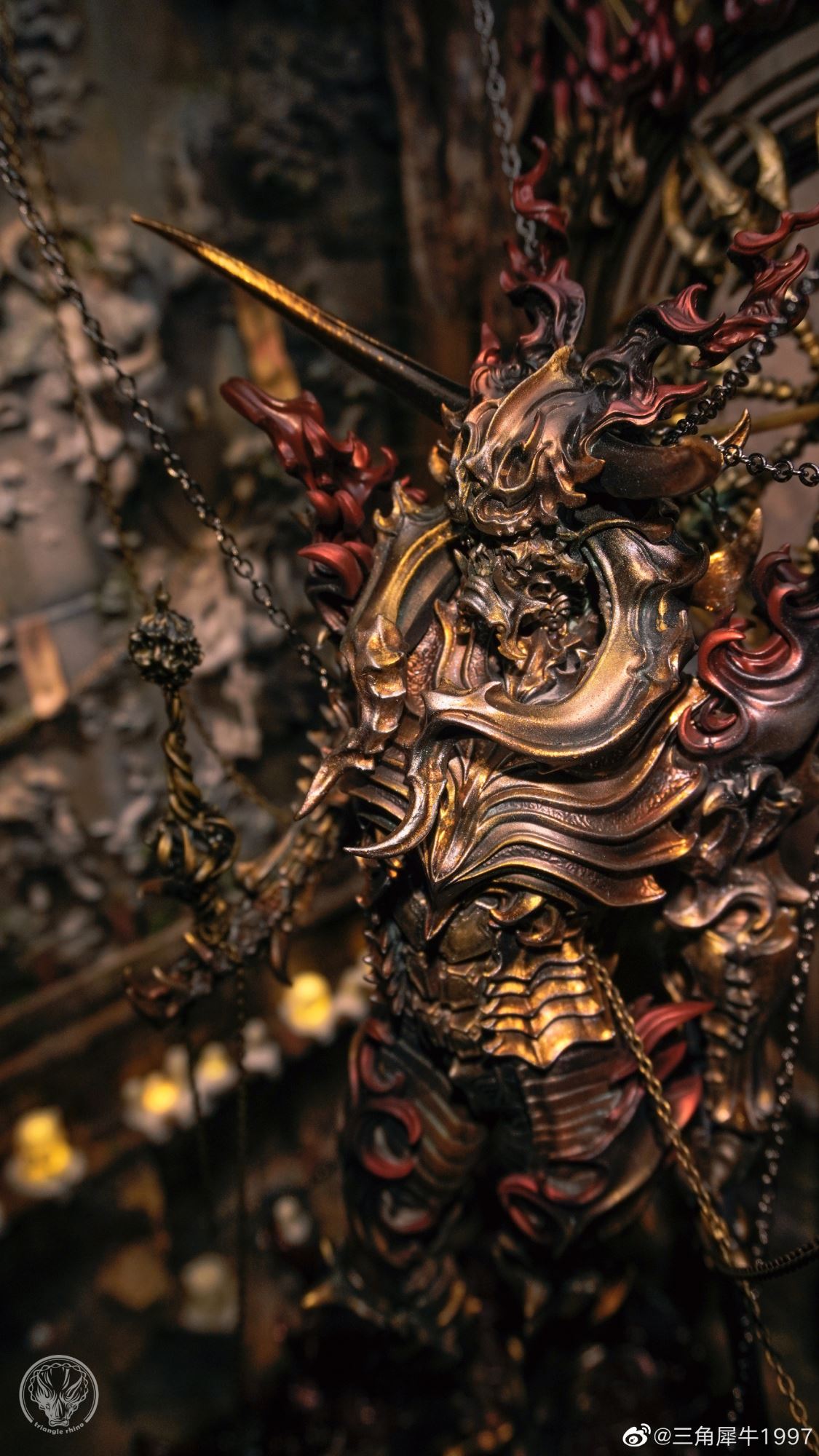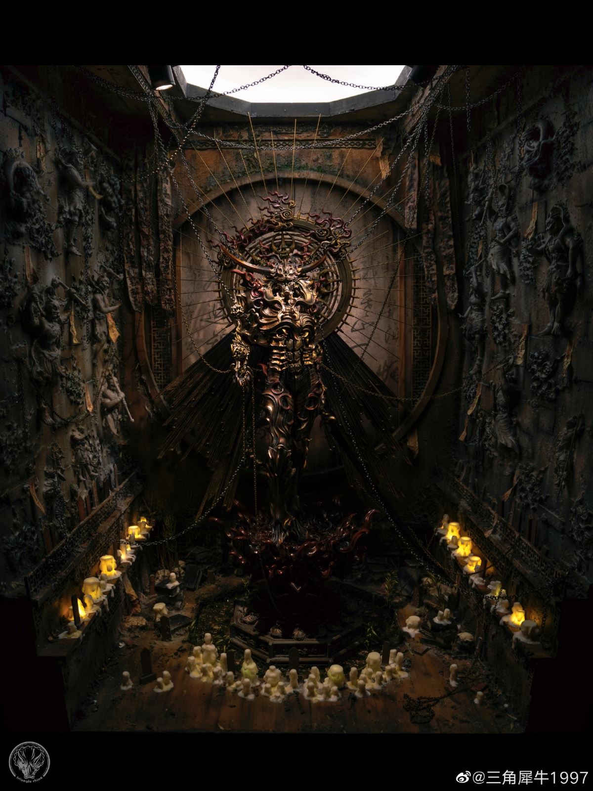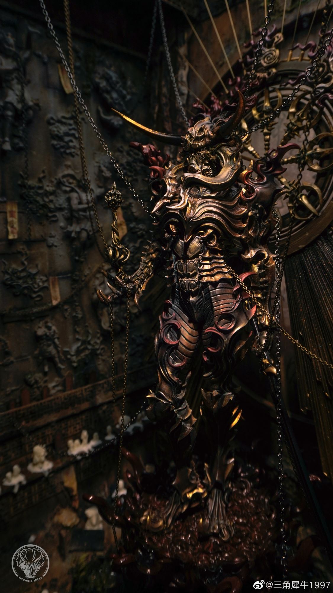 "Flaming Pluto Harry Harakyaki" งานปั้นออริจินัลสุดอาร์ตสไตล์ดาร์คแฟนตาซี ที่เราเคยนำรายละเอียดมาให้ชมกันครั้งนึงแล้ว (คลิกอ่านรายละเอียดเดิมได้ที่นี่) ถูกนำมาสร้างเป็นไดโอรามาซีนสุดเจ๋งโดยเป็นผลงานของอาร์ติสชาวจีนที่ใช้ชื่อว่า "Triangular Rhino 1997" (三角犀牛1997) ซึ่งใช้เวลากว่า 3 เดือนในการสร้างแบบจำลองนี้ขึ้นมา และบอกได้เลยว่า มันดูเยี่ยมมากจริง ๆ ไม่ว่าจะเป็นรายละเอียดการลงสีของงานปั้นต้นแบบ และองค์ประกอบต่าง ๆ ของฉาก พูดไปอาจจะไม่เห็นภาพ แต่ลองไปดูรายละเอียดแบบเต็ม ๆ ที่ด้านล่างนี้ด้วยตาตัวเองจะดีกว่า