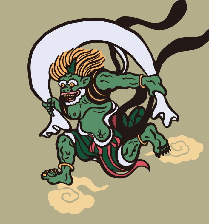 สำหรับฟุจินนั้น ในญี่ปุ่นจะเรียกว่า Fūjin (風神, มีความหมายว่า "เทพเจ้าแห่งลม") เป็นเทพเจ้าแห่งสายลมของญี่ปุ่นและเป็นหนึ่งในเทพเจ้าชินโตที่เก่าแก่ที่สุด มีรูปร่างคล้ายมนุษย์ หัวมีสีเขียวหรือสีแดง สวมชุดหนังเสือดาว สะพายถุงลมใบใหญ่บนบ่า ซึ่งถ้าเป็นคนญี่ปุ่นก็อาจจะรู้จักคุ้นเคยกันอยู่บ้าง แต่สำหรับคนไทยด้วยกันอาจจะแทบไม่เคยรู้จักกับเทพเจ้าญี่ปุ่นองค์นี้กันมาก่อนเลยก็ได้