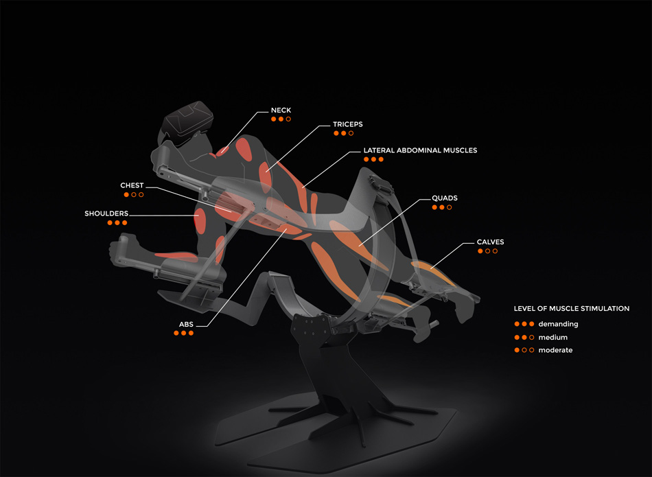 ICAROS นั้นมีลักษณะคล้ายกับเครื่องบังคับขนาดใหญ่ที่คุณจะต้องโน้มตัวนอนคว่ำลงไปกับมันโดยที่ไม่มีอะไรรองรับช่วงลำตัว แต่จะมีที่รองรับเท้า หัวเข่าแขนท่อนล่าง และด้ามสำหรับมือจับ โดยกลไกของตัวเครื่องนั้นจะทำหน้าที่เอนตัวซ้าย-ขวา เงยขึ้น-กดลง ตามการควบคุมของคุณจากการเอนตัวหรือกดน้ำหนัก ซึ่งนี่แหละครับคือการบังคับให้ร่างกายของคุณเกร็งตัวและใช้กล้ามเนื้อส่วนต่างๆ ในการควบคุมสมดุลของอุปกรณ์ตัวนี้ให้ได้ แต่ถ้าจะควบคุมเพื่อให้ทรงตัวอยู่บนเครื่องเฉยๆ นั้นคงจะไม่สนุกเท่าไหร่ ICAROS จึงมาพร้อมแอพพลิเคชั่นใน Samsung Gear VR (และจะรองรับระบบอื่นๆ ด้วย) ซึ่งให้คุณออกกำลังกายผ่านการเล่นเกมจำลองต่าง ๆ