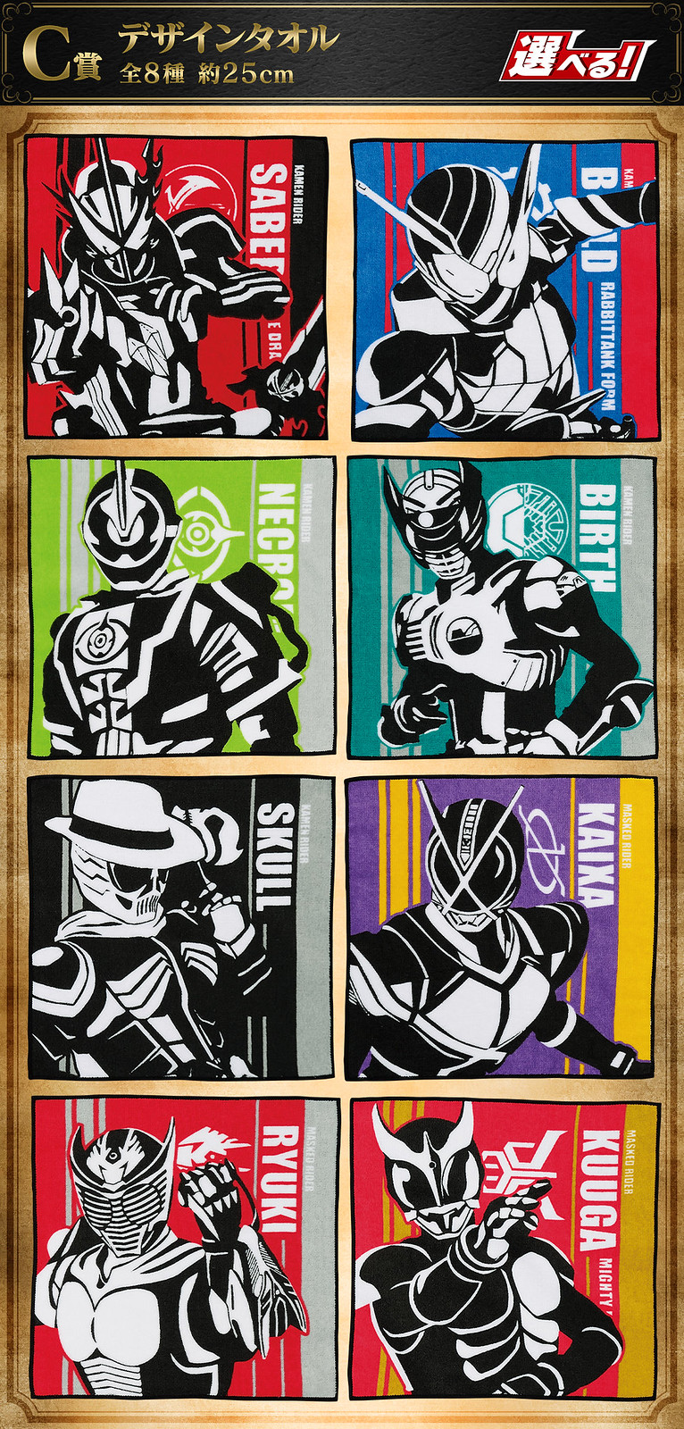 รางวัลแบบ C เป็นรางวัลผ้าขนหนูลายไรเดอร์ ขนาด 25 x 25 cm มีให้เลือก 8 แบบ